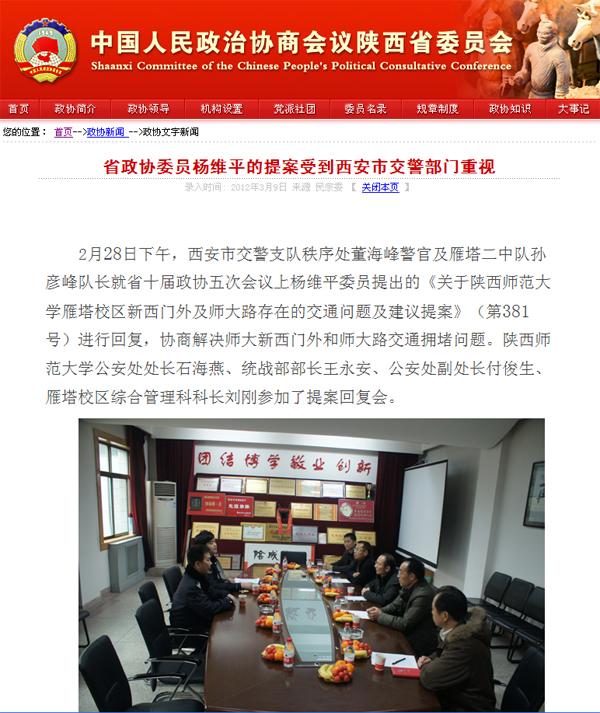 陕西省政协网站报道我院杨维平委员提案回复情况