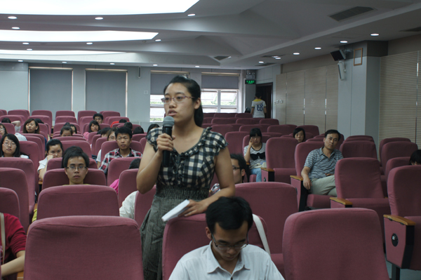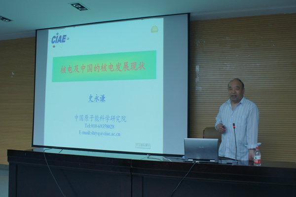 史教授的报告从什么是核电,核裂变能装置?—核反应堆,中国核电的发展,日本大地震的核辐射四个方面对核电的基本知识进行了讲解。在谈到中国核电发展时,史教授指出中国核电是上世纪六十年代才起步的,到八十年代后,由于经费紧张等原因而对核燃料等研究领域投入不足,致使这些领域成了更为的薄弱环节。目前,我国核能科技水平与发达国家存在明显差距,但是他坚信,中国能在核电领域取得突破。在谈到日本大地震后的核电辐射处理问题时,史教授认真地总结了对中国核电日后发展的教训和启示,同时告诉同学们不要“谈核色变”,只要进行有效的控制,核能是非常安全的。
