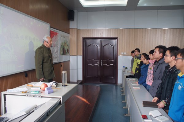 最后,报告会在杨老师带全体师生的宣誓中落下帷幕。抗美援朝的历史留下的是永存的精神,作为当代大学生应该继承和发扬老一辈革命家不畏牺牲、艰苦奋斗的革命精神,努力学习,早日成为有益于国家和民族的有用人才!