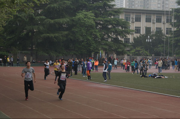 2014届全校大学生体育运动会侧记 “我运动,我健康”的青春号角吹醒了明媚的阳光,四月陕师大的体育 上,早已是人头攒动,人群如潮。