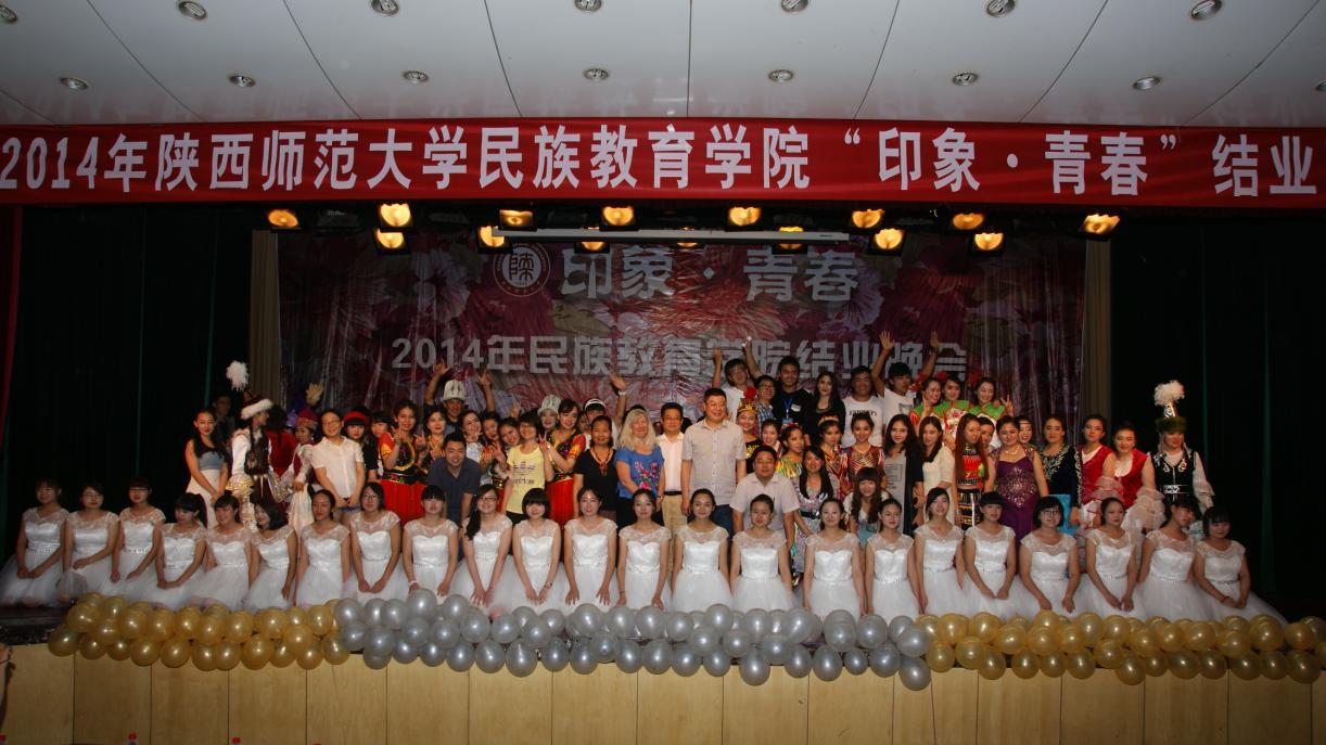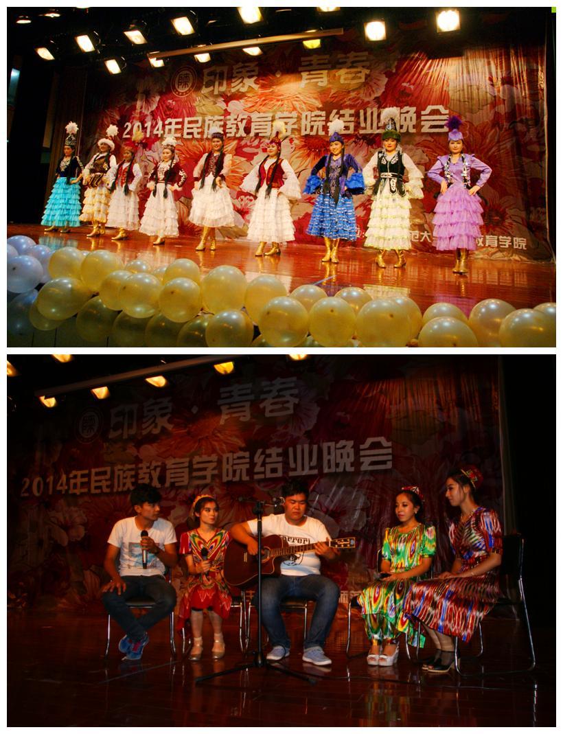 《印象·青春》结业晚会是对这一年学习生活的总结。此次参加的学院老师有冯建新、窦文阳、成珊娜、段亚绒、卢静,还有一位远道而来的威斯康辛大学马格瑞特·霍金斯(Margaret Hawkins)教授。伴随着《祝福》的节奏,美丽热情的哈萨克族姑娘为师生们带来了最美好的祝福,她们的眼里饱含着深情与眷恋,饱含着对师大的希望与祝福。此刻,不同的民族聚集在一起,和谐而又美好,热烈的掌声经久不息,晚会在欢快的气氛中进行着,整个观众席上,过道里都站满前来观看的路人和学生。随后是预科一班的11位同学表演的动感现代舞《CHU》,将现场的气氛一下拉上了高潮。之后维吾尔族节目歌伴舞《花儿》和歌曲独唱《爱要坦荡荡》让场内持续高温,欢呼声不断。
