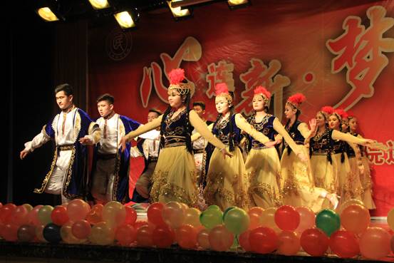 晚会在火热的开场舞《Worth it》中拉开帷幕,灯光将整个舞台照得如同梦幻一般。现场观众迅速融入到了晚会的欢快气氛中,欢呼鼓掌。随后,舞台剧《时光里的》将大家带回到了高中时候青涩的年代,就在大家还在回忆青春时,现代舞《Time train 》又给了我们时代感,让我们在时光中穿梭。哈萨克族同学热情奔放的《赛马舞》,维吾尔族的歌曲串烧以及民族服装秀《Show time》等节目一一登场亮相。这些节目涵盖了歌曲、舞蹈、朗诵各个方面,充分向学院领导展现了先锋学子多才多艺、自信昂扬的风采。激起在座同学们的阵阵掌声,经久不息。