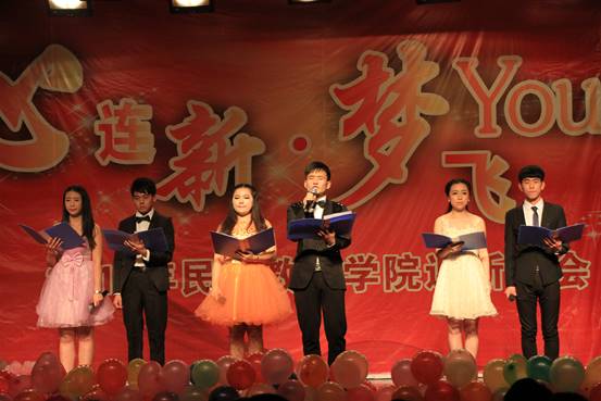 12月17号晚,我院“心连新·梦飞Young”迎新晚会在积学堂顺利举行。党委学工部副部长(学生处副处长)库来西、学院院长冯建新、党总支书记郑生忠、党总支副书记窦文阳、团总支书记萨仁娜以及部分教师代表、辅导员老师与全体学生一同观看了演出。据悉,今年的"心连新·梦飞Young"晚会历时近一个月的筹备工作,院团总支经过层层筛选,严格把关,最终确定17个各具特色的精品节目展现在本场晚会的舞台上。