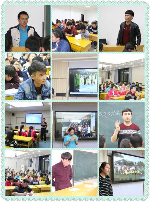 座谈会分两个环节进行,第一个环节是“预科生活回顾”,学生分成小组,在组内分享上学期学习生活的体会与和收获。一些小组代表将班级生活照制作成电子相册的视频播放给大家,回顾上学期的预科校园生活,给大家展示了预科生活中的点点滴滴,使大家回想和反思了过去的时光和记忆。另一些小组总结了上学期的预科学习生活,在动感的背景音乐下朗诵了小组成员对预科生活的感悟和感激。随后,辅导员热依木老师提议同学们展望新学期,每个人制定一份新学期的学习成长计划。