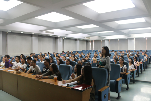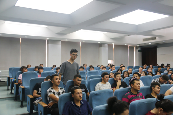 这次讲座受到了同学们的热烈欢迎,会场座无虚席。讲座开始,唐老师分别用汉语,英语,维吾尔语,壮语,蒙语,藏语六种语言中的“你好”向同学亲切打招呼,并与现场的同学们互动,各族同学们积极地向大家介绍自己的民族语言,让同学们感受到了各民族语言的独特魅力。接下来,针对少数民族预科学生英语学习存在的问题,唐老师以“成长—成人—成才—成功”为脉络,讲述了在预科阶段如何提高英语学习的效果,鼓励同学们从预科开始,重视英语学习,抓住一切学习英语的机会,努力提高自己的英语水平。