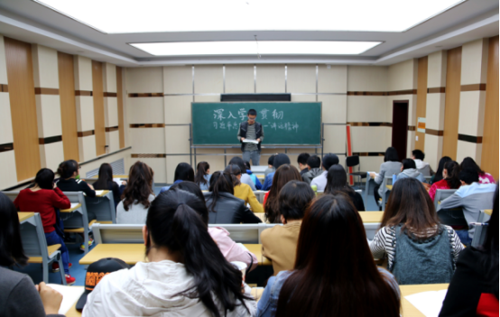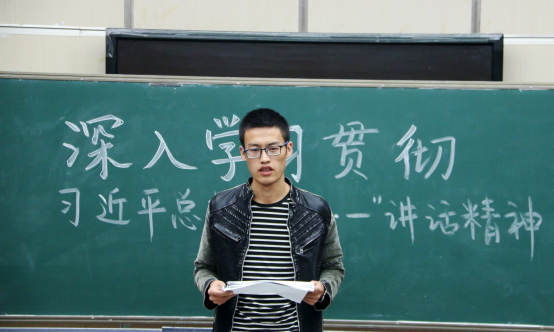 学生第二党总支书记王竞慧从当代中国处在的决胜小康,实现中华民族伟大复兴的角度出发,使大家不断坚定对中国共产党治国理政能力的信念,深刻认识当代中国共产党治国理政的新的历史特点。作为学生党员,应充分把学习讲话与学习党的理论特别是习近平总书记系列重要讲话精神结合起来,深刻理解精髓要义,尤其要深刻理解不忘初心、继续前进的重大意义。