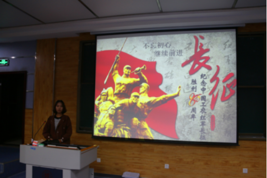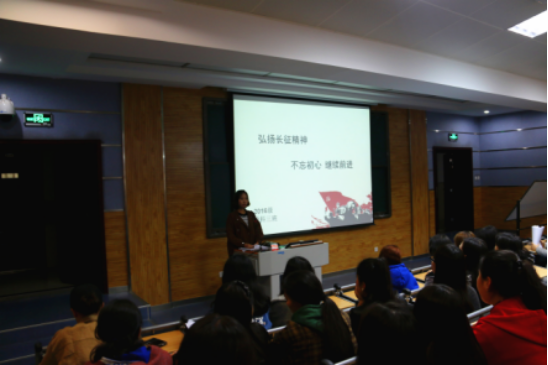 团支书王嘉傲简单向同学们介绍了中国工农红军长征的历史背景、过程及意义。王嘉傲说:“长征胜利地跨越了12个省、总行程达2.5万里以上。虽然失去了南方原有的根据地,损失了很大一部分力量,但是保存和锻炼了中国共产党和红军的骨干,沿途播下了革命的种子。正当抗日战争的烽火即将在全国熊熊燃烧起来的时候,这三支主力红军为担负起中国革命的新任务和抗击日本侵略者的神圣职责而在西北会师,这无疑是一个具有伟大历史意义的事件。它预示着中国革命新的局面的开始。”