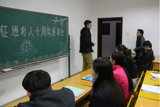 10月27日晚7:00,我院两年制预科七班同学在六附楼201教室举办纪念红军长征胜利八十周年的座谈会。座谈会上,主持人吐力发尔向同学们介绍了本次活动的目的及意义,并提出了一些关于长征的历史问题,同学们都积极回答,各抒己见,课堂气氛十分活跃。最后辅导员总结说:“我们应该将长征精神内化成我们自己的一种力量,它来源于我们内心深处,在我们孤独时,让这种力量带领我们,指引我们,走向胜利,走向前方!”