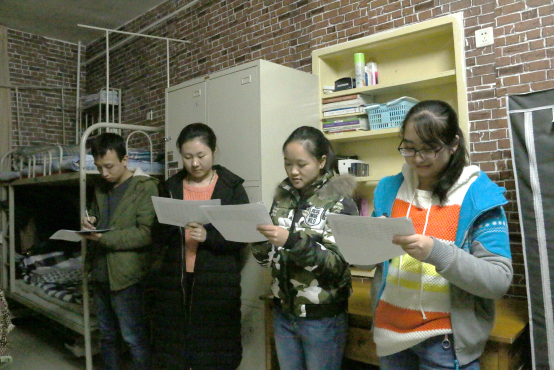 12月21日晚七点,我院如期进行以“展民族魅力,建和谐寝室”宿舍文化节活动之“室全室美”活动的第三轮评比环节,参与评审的有新疆内派服务管理教师迪丽努尔、赵雪艳、辅导员热依木、兼职辅导员蒙桂芳、刘雅丽以及学生会生活部的全体成员。参加评比的有全体少数民族预科生宿舍。