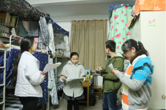各位评审本着“公平、公开、公正”的原则各司其职进行认真检查并给予评分,各宿舍同学们积极响应文明宿舍的评比,主动接受对其宿舍用电安全、宿舍卫生和宿舍文化创意进行细致检查,有的宿舍还将自己的家乡特产拿出来请大家品尝。本轮宿舍评比检查不仅注重“查”的过程,也注重在查的过程中发现问题,评审组的老师们对各别寝室出现的对于物品的摆放和寝室通风等存在一些问题提出批评并指正。