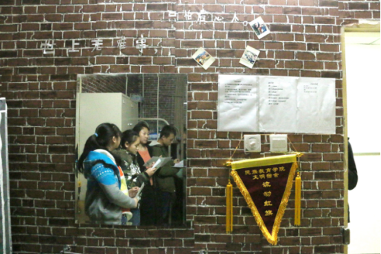 评审组首先来到12号男生学生宿舍楼进行观摩,接受观摩的部分宿舍代表向大家介绍了其寝室的布置方法及亮点,个别男生宿舍将寝室将墙壁一角制作成愿望墙、文化天地栏等,有的还贴了各式的壁纸,铺上了各样的地毯,使寝室成为“星球世界”、“运动天地”等,整洁干净、通风良好、富有创新的男生宿舍使各位评审老师刮目相看。接着评审组来到2-3号女生宿舍楼进行观摩,女生宿舍与男生宿舍文化差异甚大,一些手工艺妆品、本土文化特色充满温馨的寝室,废弃饮料瓶纸做的书架、小纸帽做成的吊链,宿舍门上的贴花和装饰都充满民族情怀。从这些宿舍装饰中,流露出同宿舍不同民族成员之间浓厚的感情和同窗友谊。