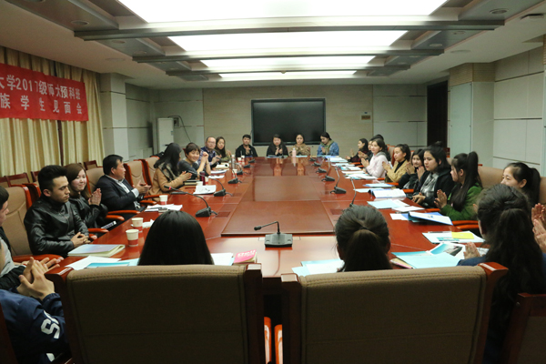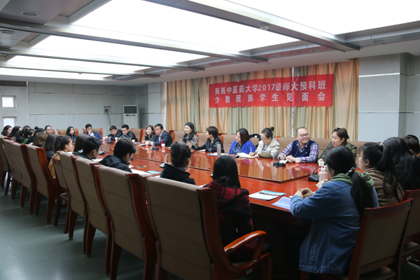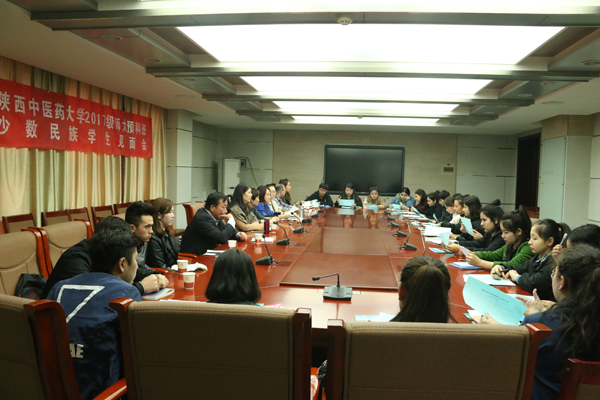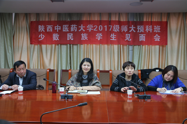 与2016级预科班少数民族学生举行见面会。参加见面会的有陕西省新疆籍少数民族学生教育服务管理协调站站长库来西、陕西中医药大学教务处副处长陈丹丹、新疆内派服务管理教师门新和、热依拉·艾山、学工部教育管理科科长高淼、学工部教育管理科干事吕腾、教务处干事赵力、陕西中医药大学2名在校生、我校三公