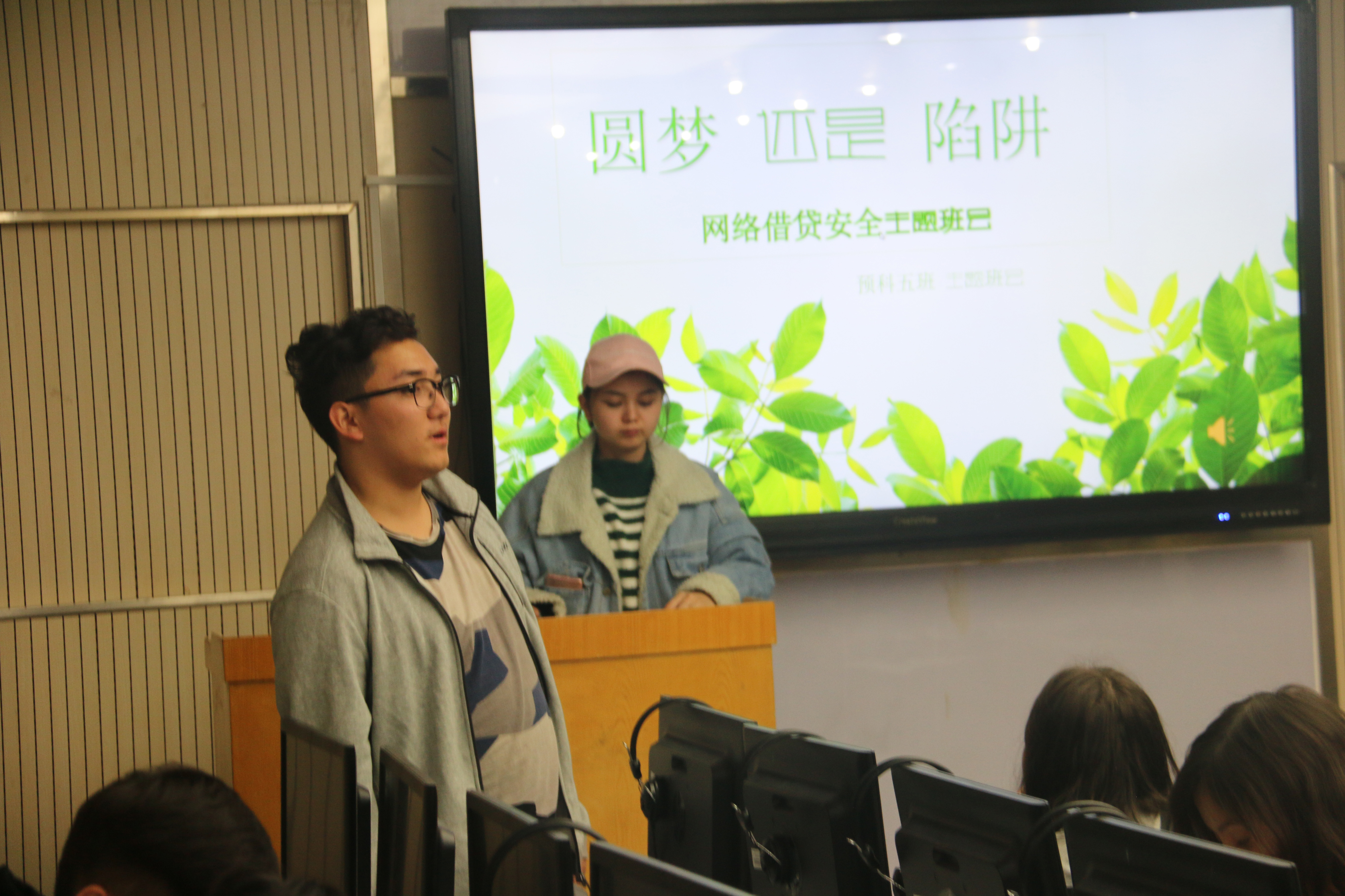 4、在预科五班班会中,团支书凯迪亚同学结合网络借贷安全问题,讲解了几个因不良校园网络借贷而走上不归路的惨痛事例,告诫大家远离陷阱,创造美好人生!同学们全神贯注聚精会神,时而低头沉思,时而抬头凝望。学生们从他人身上惨痛的悲剧汲取经验,增强了自身的风险意识,树立了正确的消费观念。(附图8)
