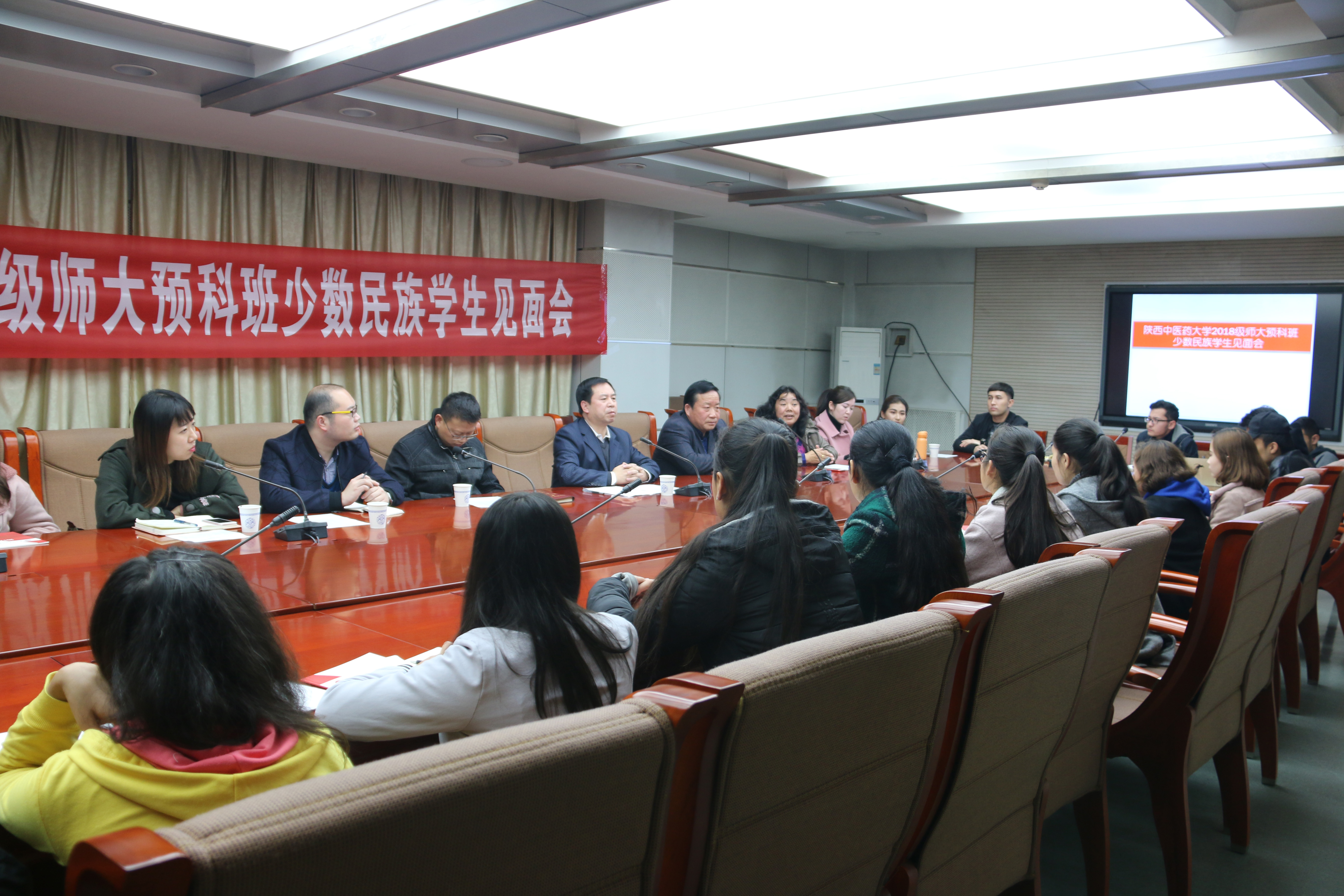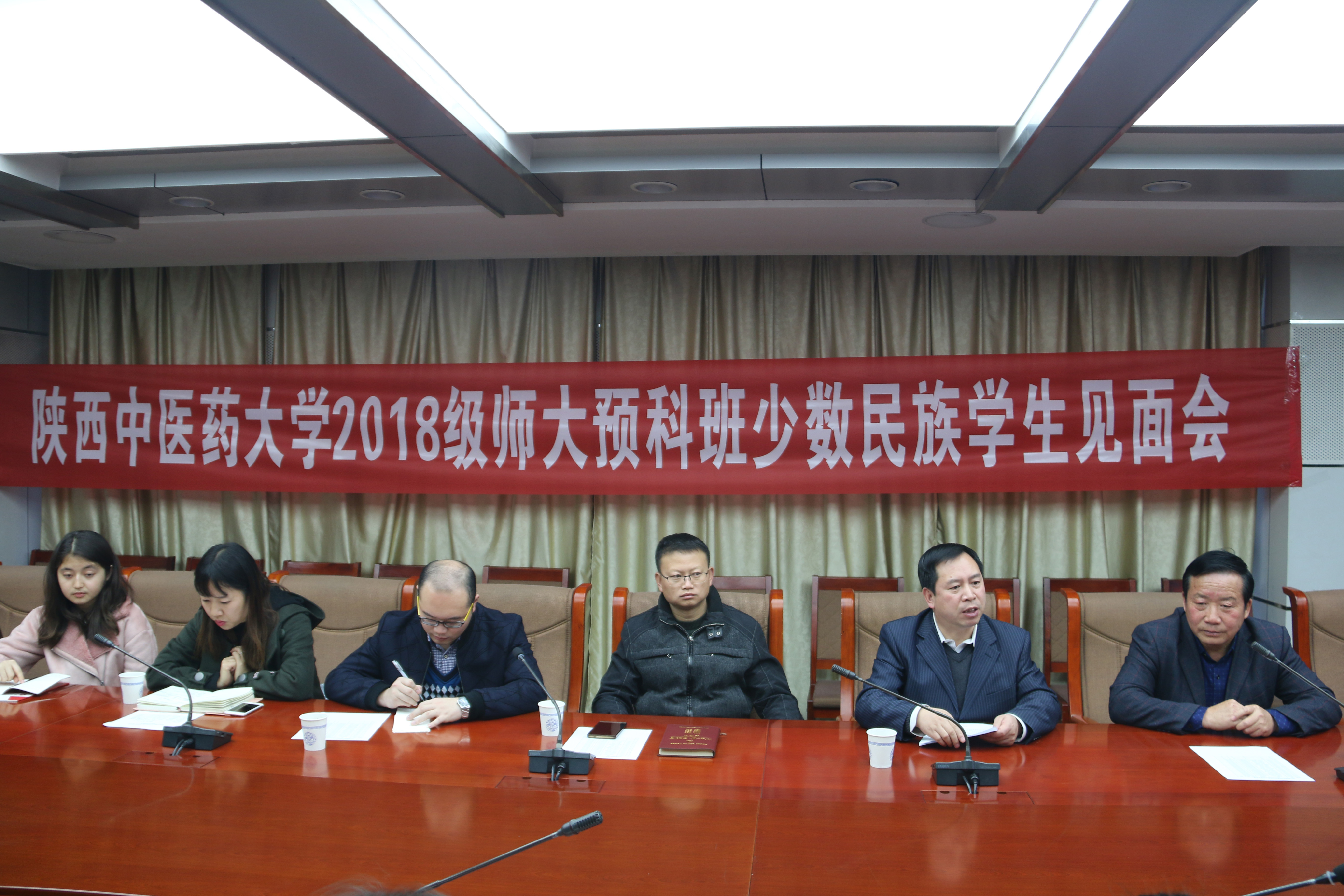 11月15日下午,陕西中医药大学教务处处长杨景锋,学工部副部长杜国辉一行到我院与2018级新疆籍少数民族预科班学生举行见面会。见面会由学工部副部长杜国辉主持。