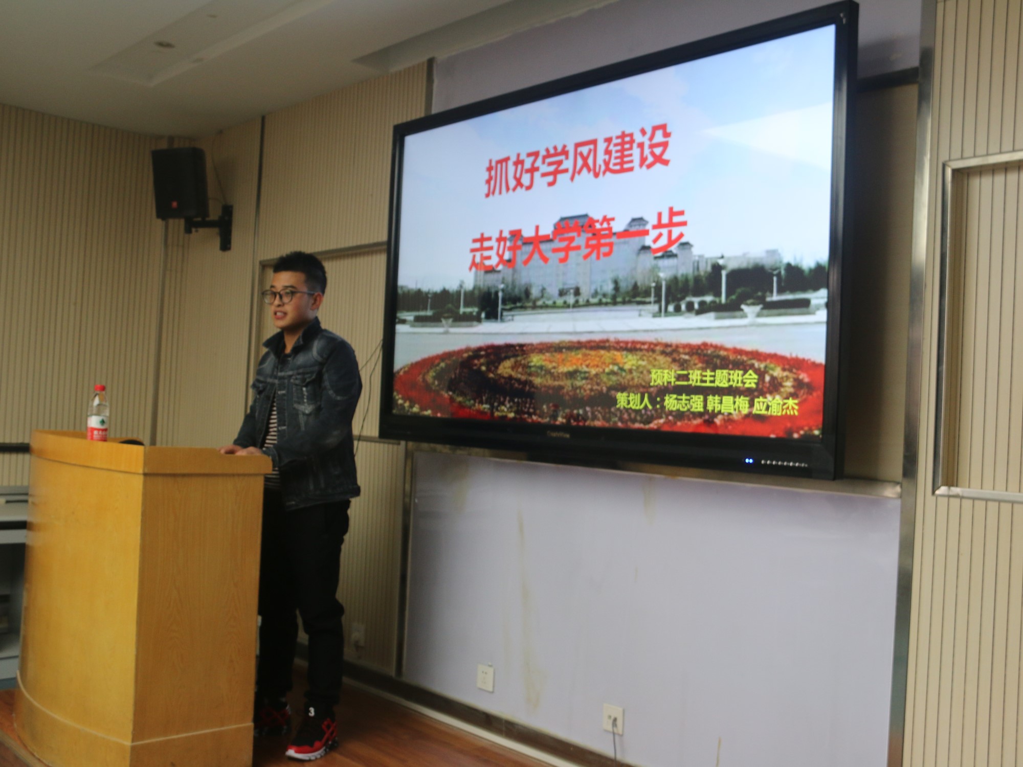 预科2班全体学生在辅导员张蕾老师的带领下已走过了大半个学期,在这半个学期的学习和生活中,大部分同学已渐入佳境,但还有一部分同学还未适应大学的学习生活。因此,经预科二班班委商议,于2017年11月23日下午3点在六附楼208召开一次以"抓好学风建设,走好大学的第一步"为主题的班会。本次班会是由组织委员杨志强主持召开,并且邀请了2016级预科学姐姬红霞讲述自己的亲身经历,以及学习经验,并对学弟学妹的生活嘘寒问暖,给予关怀。