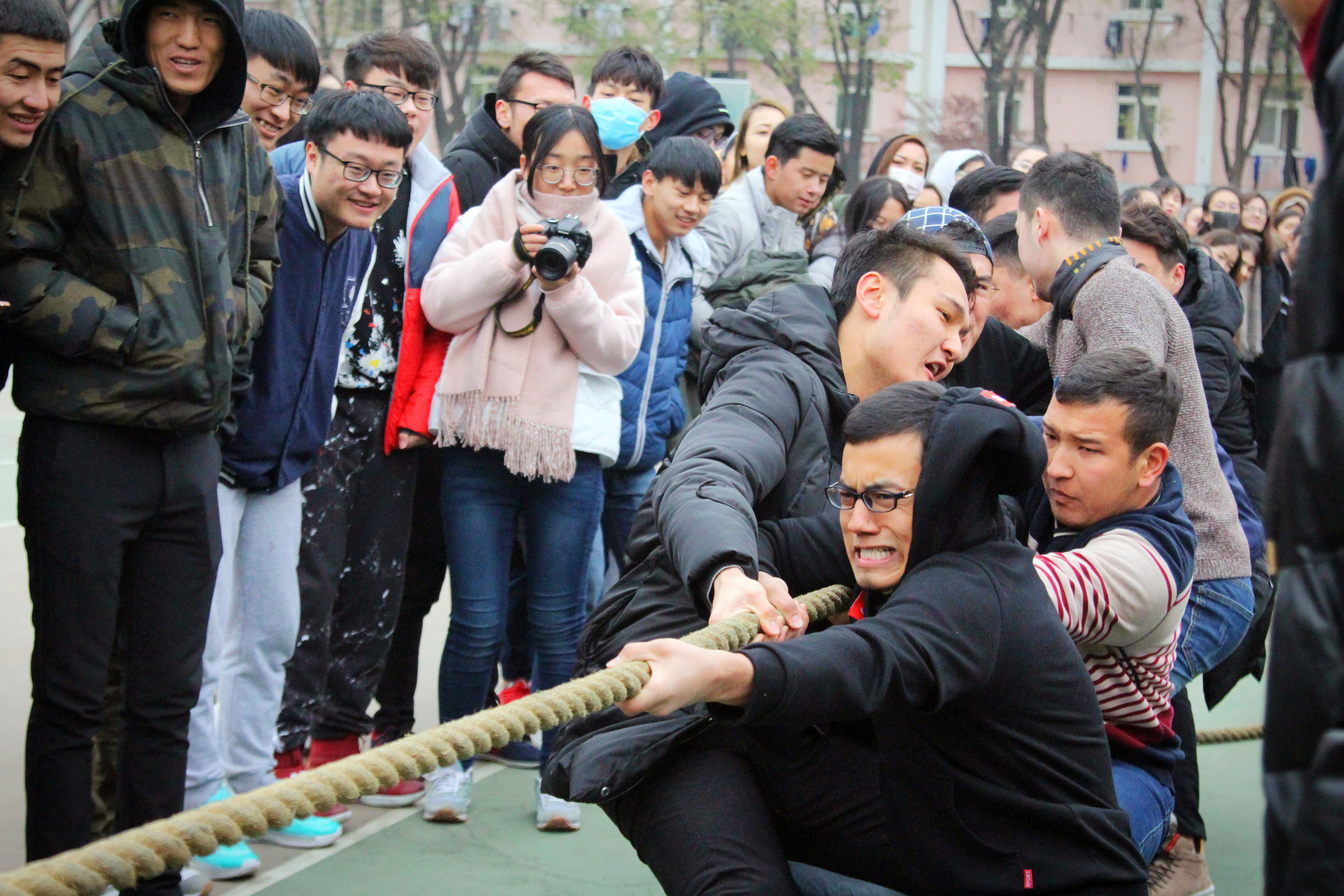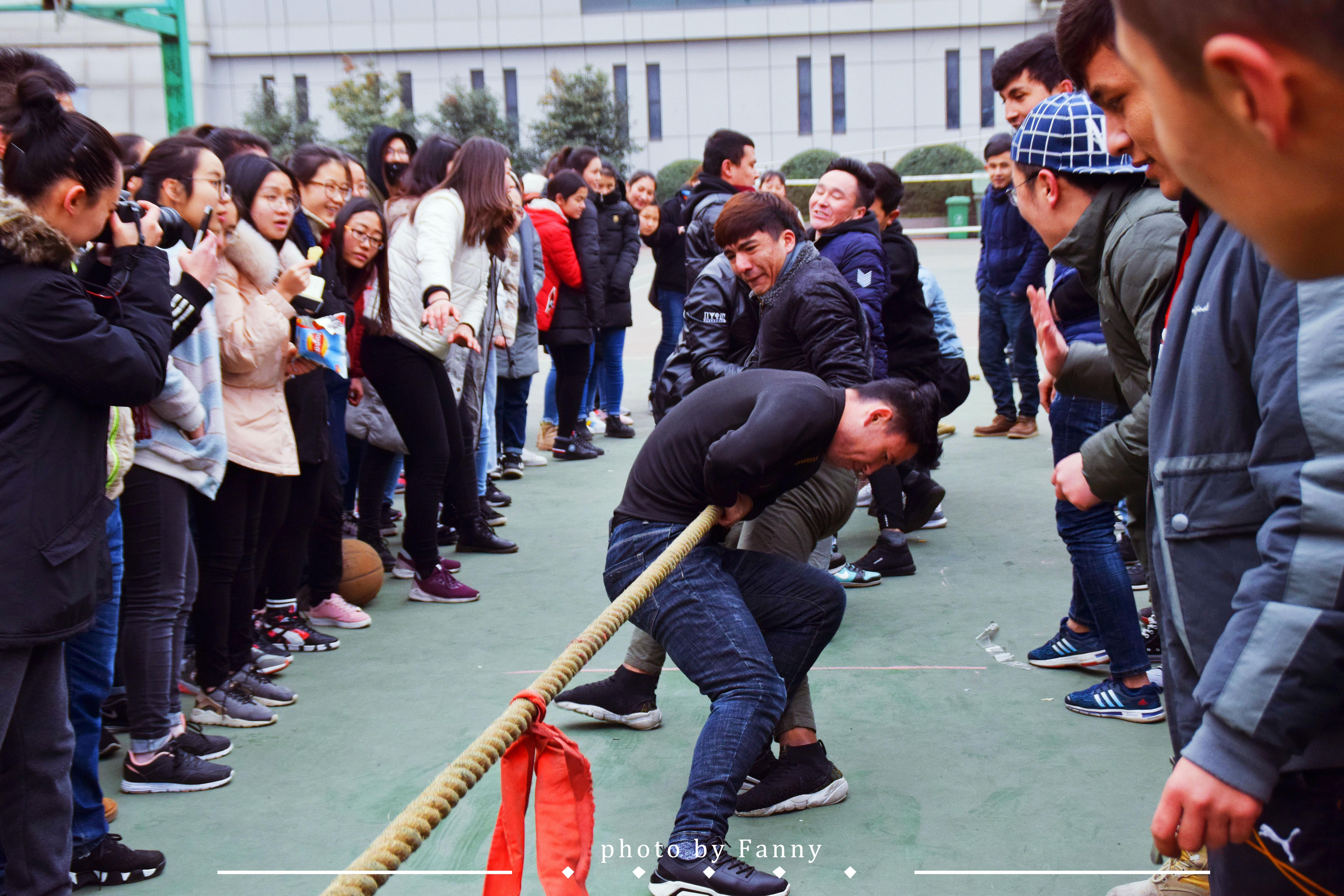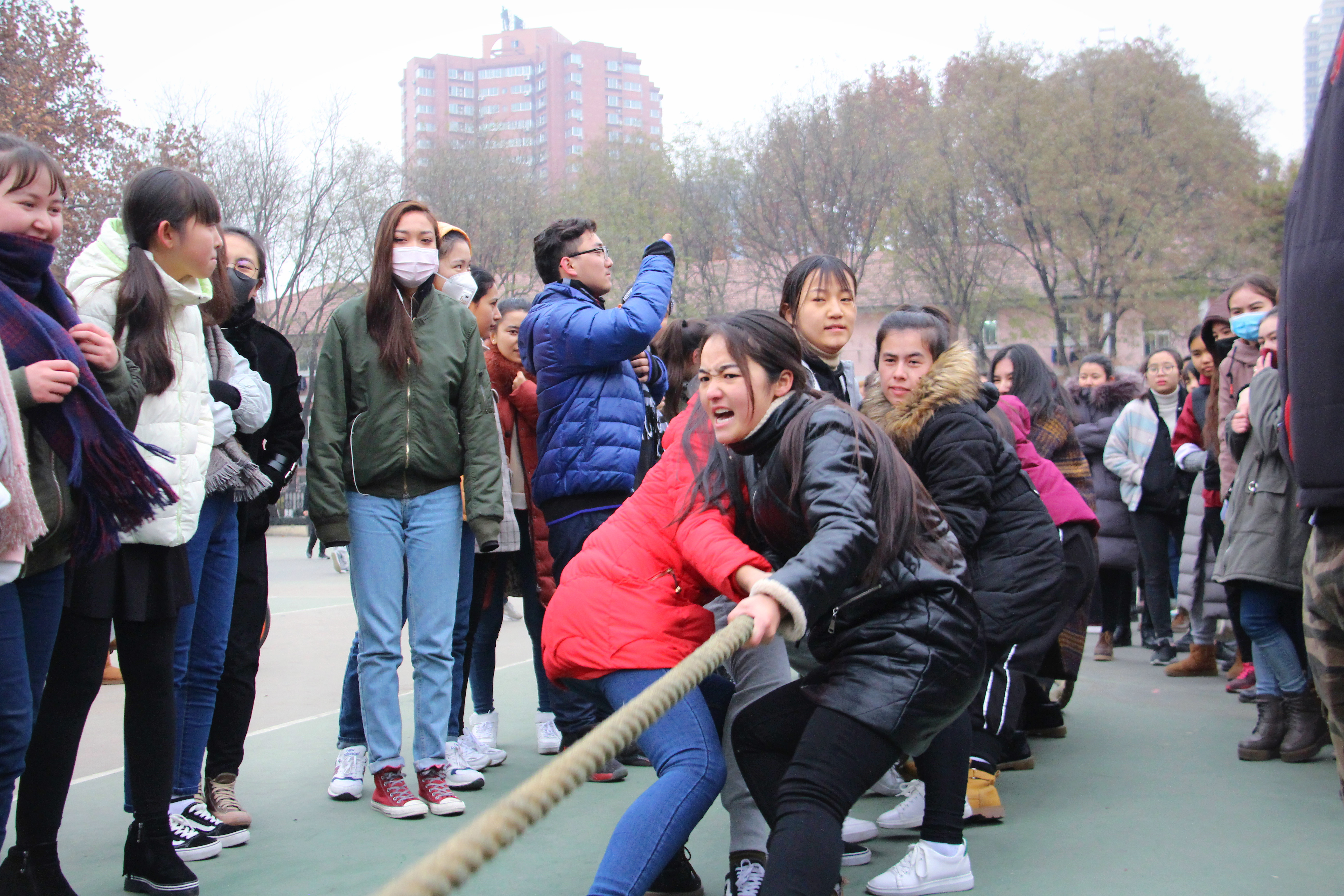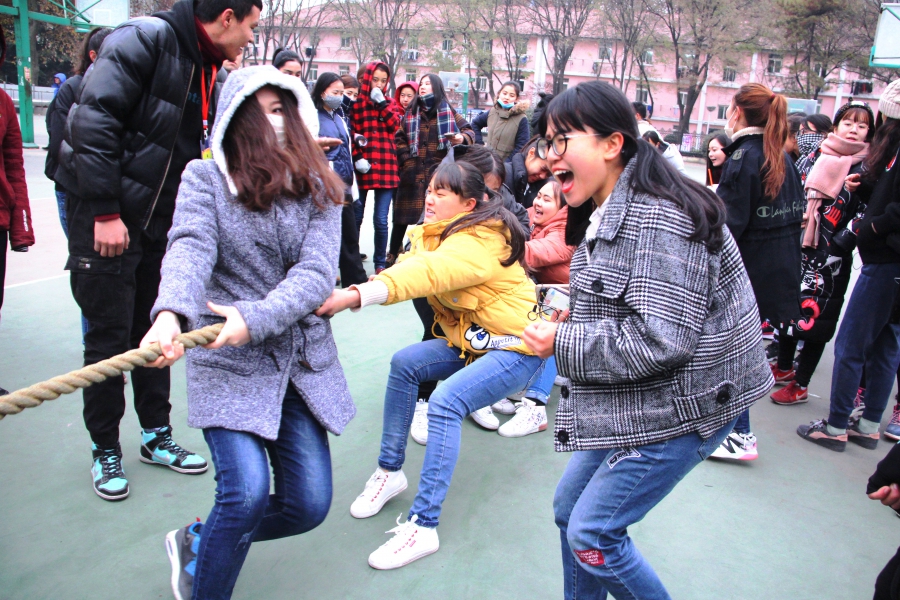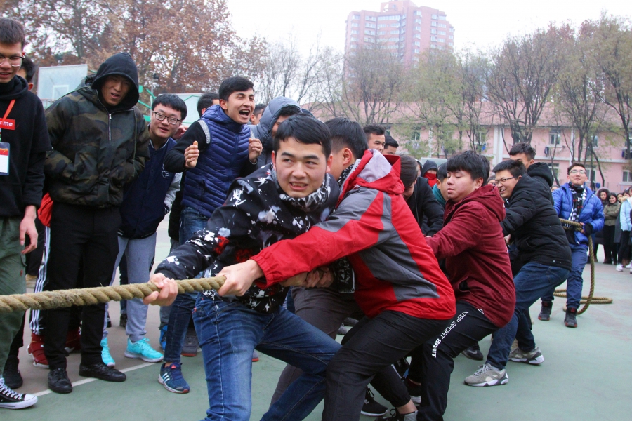 当比赛的哨声一响起,队员们口中一齐高呼着“一二,一二”,双手紧握长绳,憋足了劲拼命往后拉,在场观赛的同学们自发组成啦啦队为参赛人员加油。呐喊声此起彼伏,裁判们依据公平公正的原则,参赛人员本着" 友谊第一,比赛第二" 的原则,整场比赛进行有序,过程激烈却又饱含乐趣。经过激烈的耐力,体力较量,最终分别评出男、女生参赛队伍前三名。