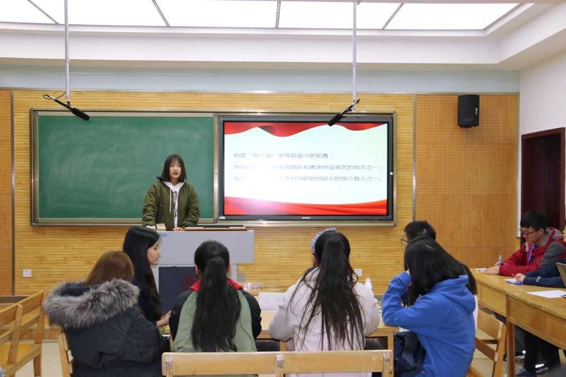 本期读书会由玛合巴丽同学主持。读书会上,主持人向同学们介绍本次活动的规则与评分标准,随后四个小组的成员开始按顺序进行角逐。在活动中各组同学精心准备,表现精彩,把活动推向一浪浪高潮。第一小组的同学语言生动,吐字清晰,通过制作精细的ppt向同学们展示了习近平同志七年知青岁月的点滴与自己的阅读心得。第二组的同学则善于以口语化的语言拉近观众与书本的距离,期间多次运用举例论证向同学们说明当代青年该如何建设美好中国。第三组同学另辟蹊径,并不拘泥于书中内容,而是积极与观众互动,通过与观众的沟通不仅宣传此书而且还感染了观众。第四组同学则很好地将个人感受与书本内容结合起来,使观众更为直观地感受到习近平同志青年时期正直勤奋的良好作风。