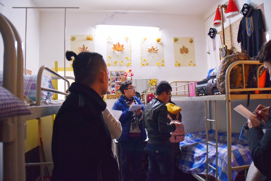为营造良好的宿舍文化环境、建设和谐的宿舍氛围,进一步促进宿舍成员之间的交流合作,在气温骤降的12月,民教院开展了寝室文化建设评比活动,由我院学工组全体老师和学生会生活部部分成员组成评审团。