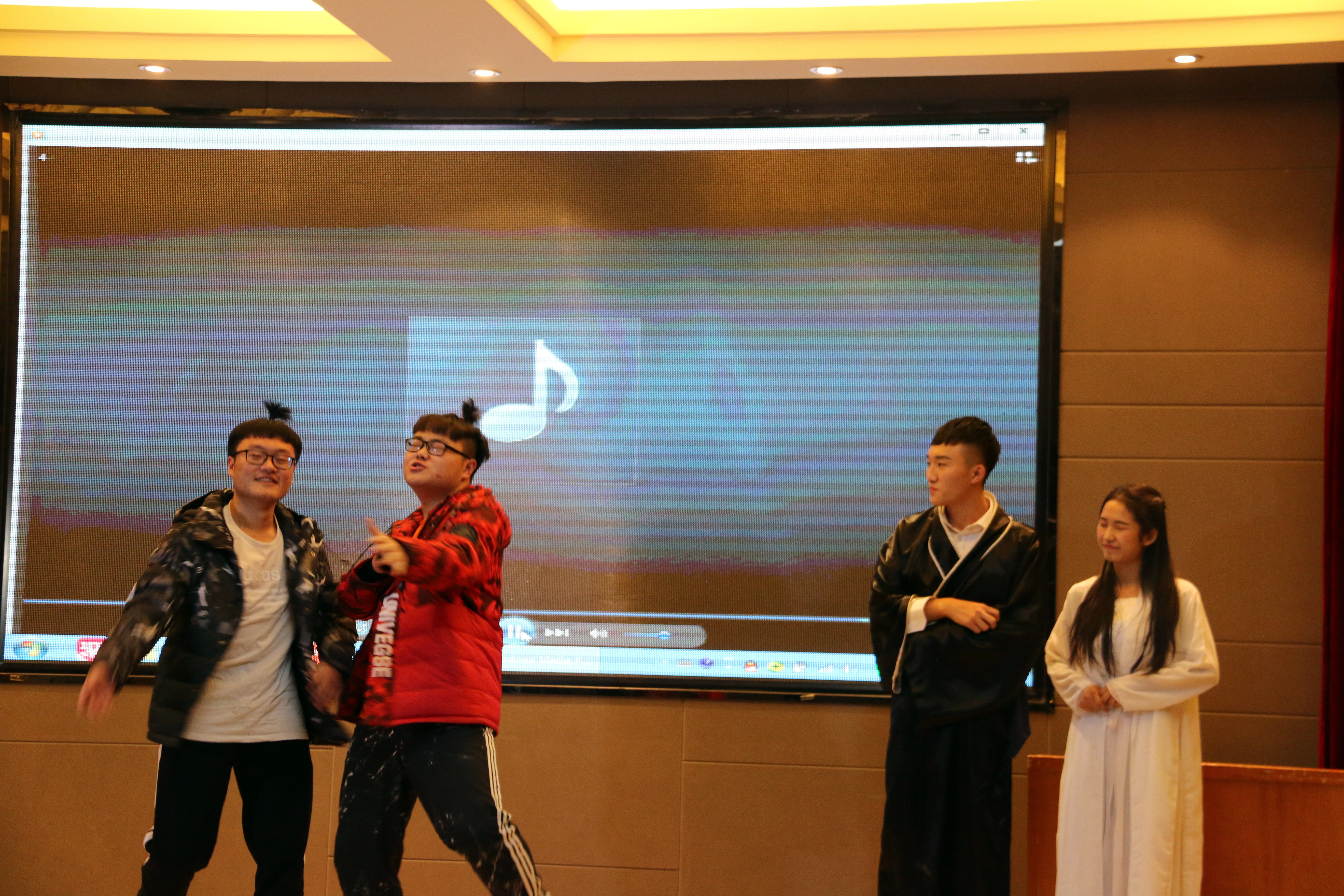 期间还举行游戏环节,“你画我猜”、“抢凳子”等游戏让大家彼此分享快乐的心情宅舞《流星群》用欢快的节奏承接热烈的气氛舞台剧《芳华凯哥》拉我们回到过去,浸身在过去的高中年华里小品《三打白骨精》让现场笑声连连《歌曲串烧》让杯子发出音乐声附和着少女们的歌声,让观众陶醉于其中《说唱街舞串烧》带来酷酷的炫风,让年轻得以张扬。至此,一连串精彩的节目告一段落,联欢会在主持人的致辞中圆满结束!