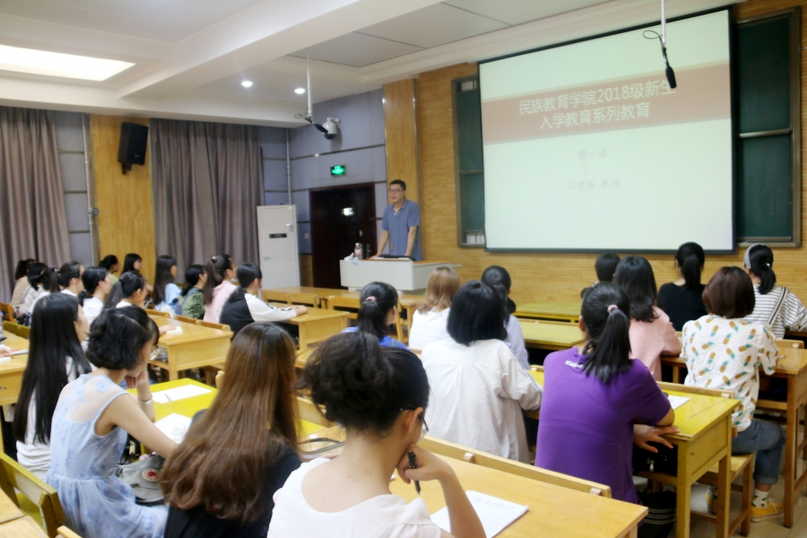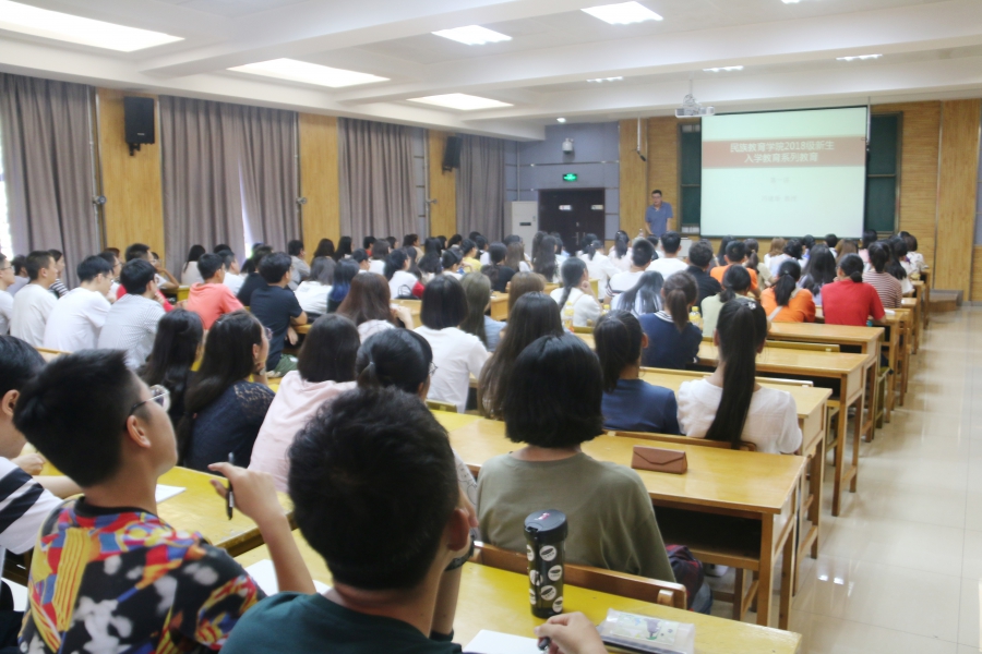 学院院长围绕自身心态、适应大学生活、热爱运动、生活态度、纪律和学习上的要求、正确恋爱观等八个方面为同学提出了八点要求和建议,同时教育同学们大学的生活不但要抓紧学习,也要不断完善自我以实现自身的全面发展。其中,院长谈到学习态度时,说到:“虽然大家都是不同民族的精英学子,但是大家仍要放下自己的自豪感,放下包袱才能更好前进!”这饱含激情的话语既是院长对民教院学子的赞扬,也是对大家的劝勉激励。在谈到有关读书、运动与学会包容等与同学们息息相关的内容时,院长以自身为例,将生活中蕴含的道理通过朴实晓畅的语言向大家娓娓道来,令同学们感到十分亲切。同时,院长向大家推荐了《西方哲学史》,并补充说明道:“那无论是哲学史上的高峰康德,还是酒神精神的尼采,亦或是海德格尔的桥,都值得同学们一探究竟。