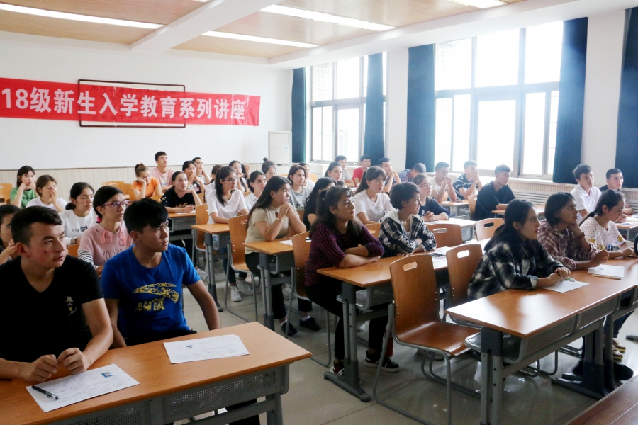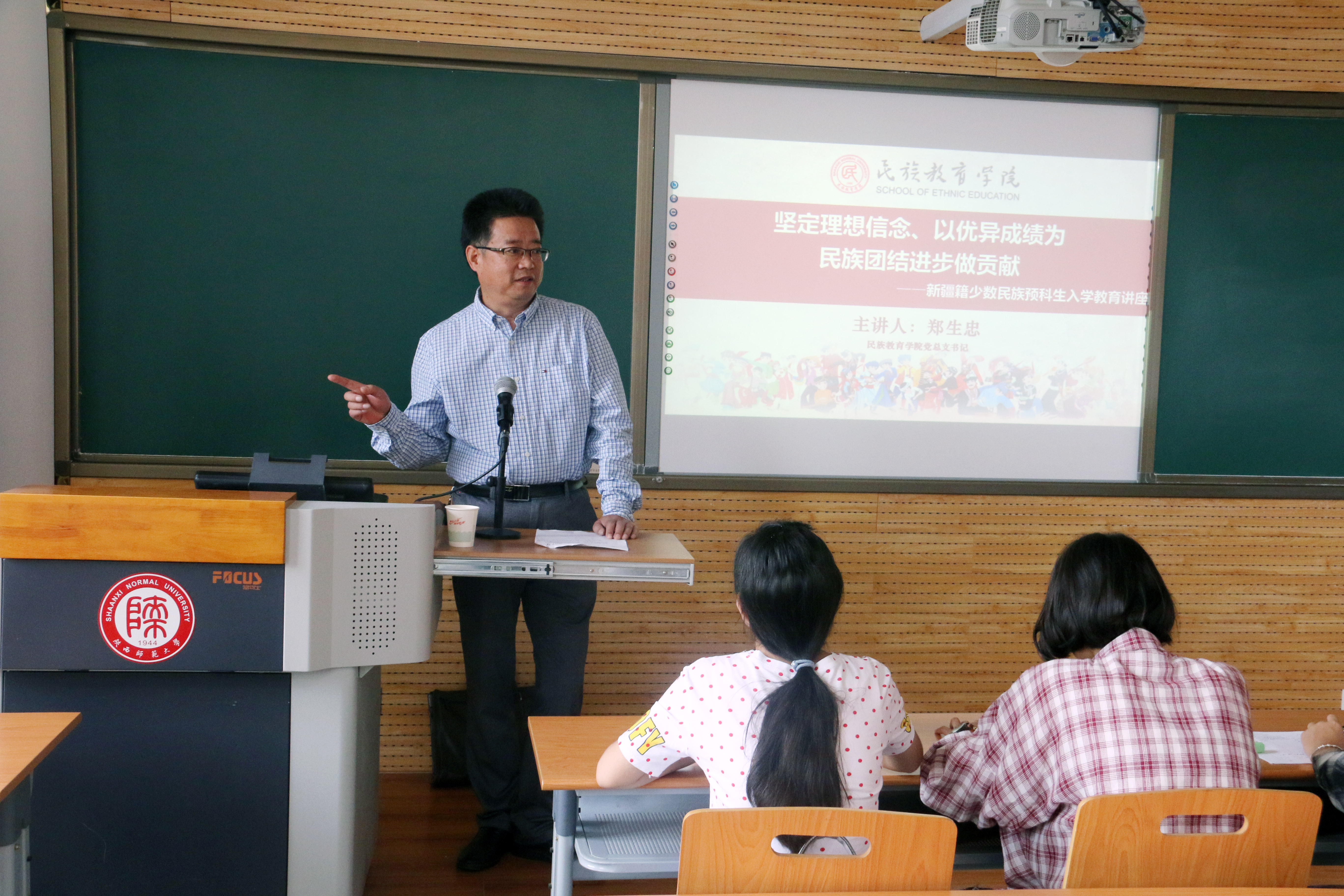 的发展历史、学院文化、办学理念和大学精神的传承等方面做了简单的介绍,并着重强调预科阶段学习的重要性,说到预科阶段要学习和掌握多门语言的重要性和必要性。他鼓励同学们在校园生活和学习交流中尽量使用汉语,学好、用好汉语言文字,养成自主学习语言的习惯、主动背诵典型的汉语散文、名句名言或者诗歌。并希望同学们珍惜大学学习机会,在校期间调整好心态,从成长阶段努力走向成才之路。其次,他围绕预科生教育管理制度、预科教学、预科会考、课堂出勤率、迟到旷课等问题,并对宿舍卫生、宿舍安全、同学相处等问题提出意见和建议,针对近几年的国内外复杂社会热点和背景为例,强调了作为大学生一定把维护国家统一放在首要位置,在校期间禁止参加任何形式的宗教活动,要有积极向上的生活观、学习观、人际交往观,要把全方位发展做为自己的学习动力和今后的努力方向。最后,郑书记对同学们提出几点要求和希望,第一,要求学生要在“做”的方面多付出汗水,平时学习和生活中要用汉语交流,尽快提高汉语言表达和使用能力,对自己提出严格要求去主动学习,培养会学会用的学习和实践能力。第二,严格遵守校纪校规,认真完成预科阶段的各项学业和课外任务;第三,积极参与学院的文化建设和文体活动,增长知识、提高才干;第四,加强个人四个自信、五个认同、五个维护意识,自觉维护学校和学院民族团结的良好氛围,以优异成绩为民族团结进步做出自己一份贡献。郑老师希望同学们能充分利用学习时间,多读有关文学、历史、哲学和科学的书籍,扩展自己的知识面,通过多阅读、多背诵、多练字写作、多听讲座、多实践来完善和充实自己。更希望新疆籍同学们发扬优良传统,抓住党中央发展少数民族教育、振兴少数民族地区经济的机会,加强个人思想修养和道德品质,树立好正确的学习理想和目标,尽快适应大学生活,全身心地投入到学习中去,为今后的发展奠定良好基础。