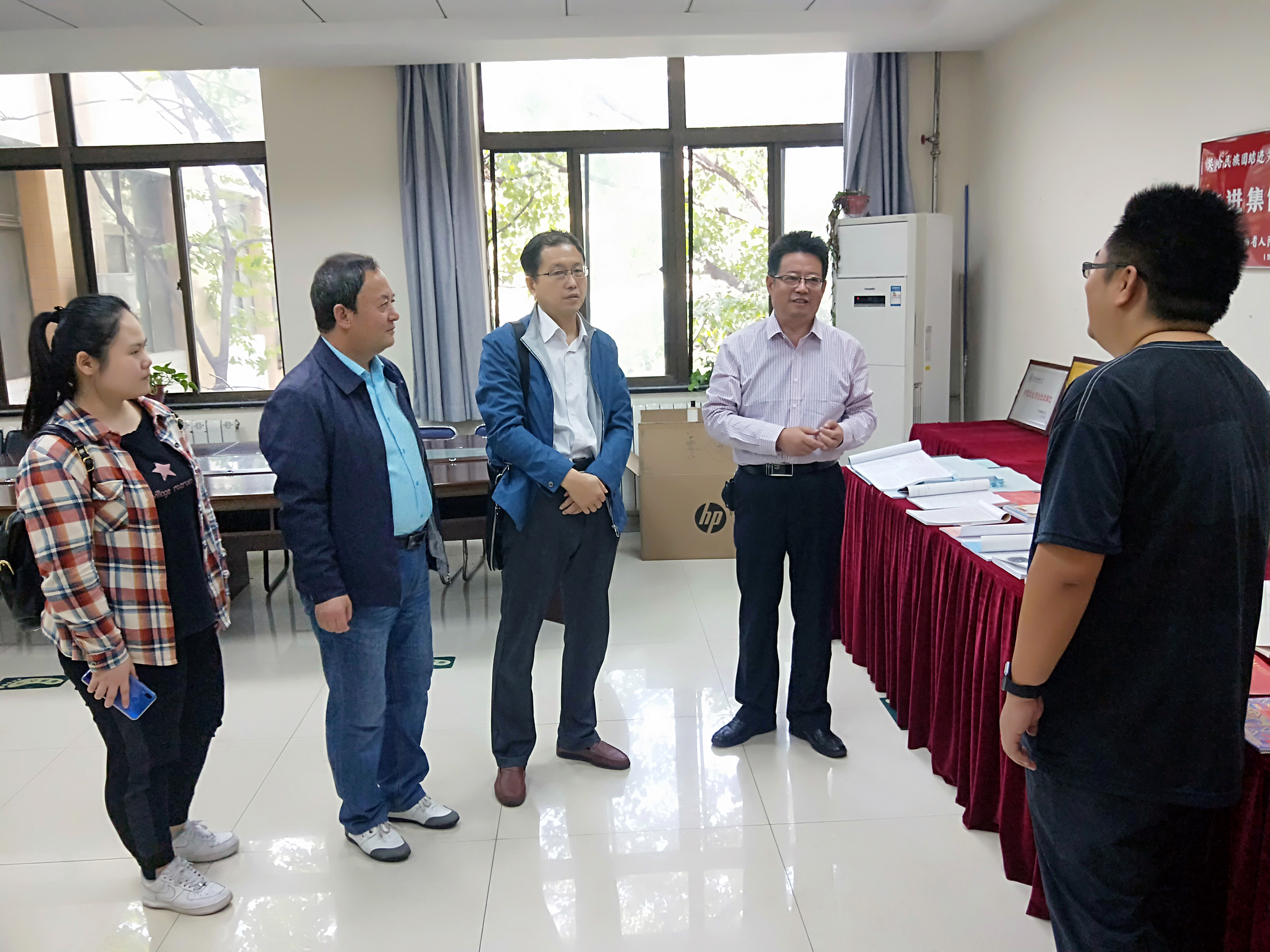 少数民族学生管理情况进行了介绍,对学院学工组的例会制度、谈心谈话制度、“一对一”学业帮扶制度、学生去向报告制度、少数民族学生干部选拔与培养机制等工作做了简单的交流,并陪同内派教师参观了石榴籽工作坊、“悦心坊”二级心理辅导站、“少数民族大学生马列理论学习中心”以及学院学工文化墙和民族教育成果陈列室,希望依托石榴籽工作坊,在未来的工作中相互分享、互相学习,相互合作。