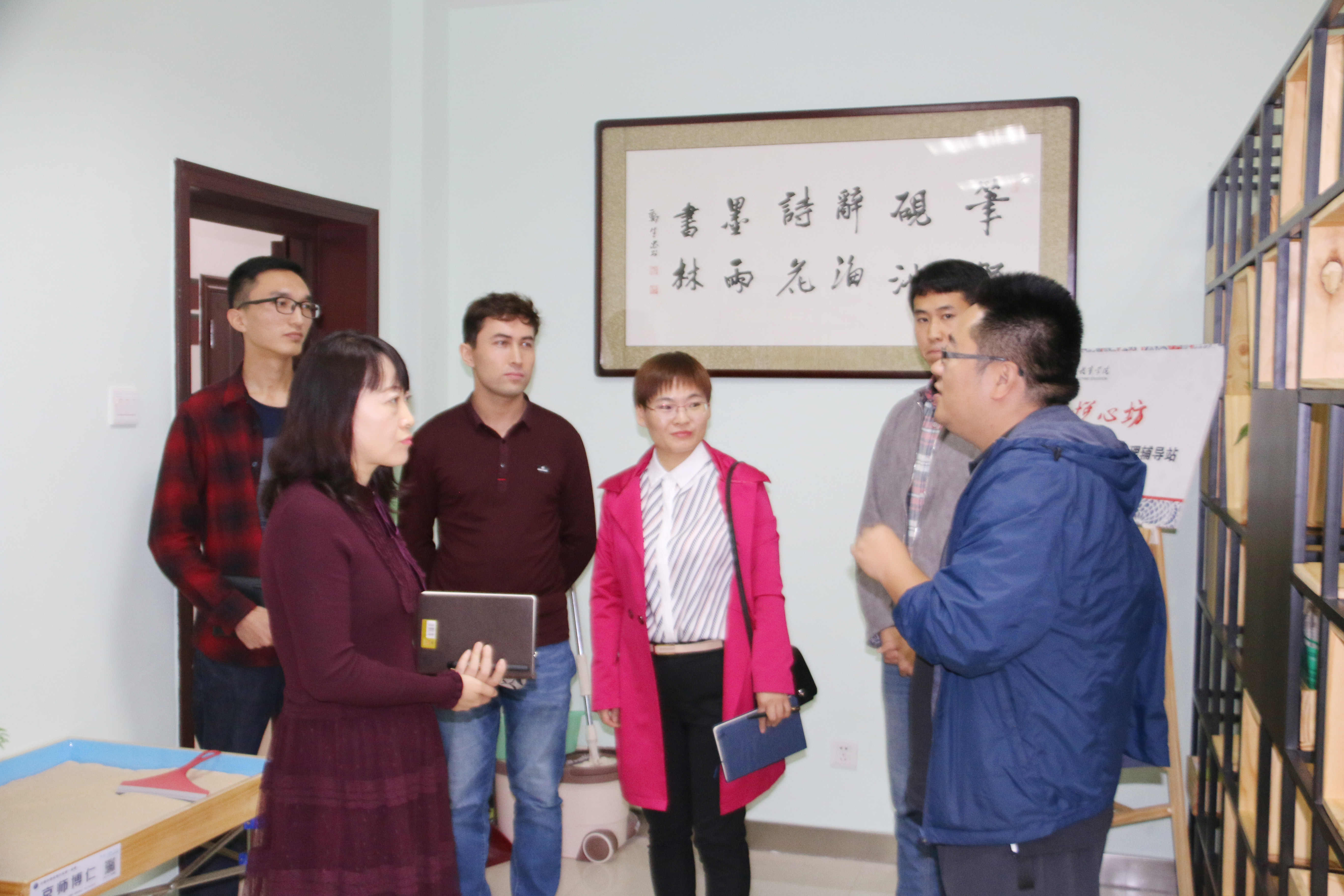 座谈会后,副书记窦文阳带领调研组分别参观了我院石榴籽工作坊(雁塔校区站)、学院“悦心坊”二级心理辅导站、学院文化墙和民族教育成果陈列室,介绍了学院的学生工作培养和管理等方面的相关内容和成果成效。