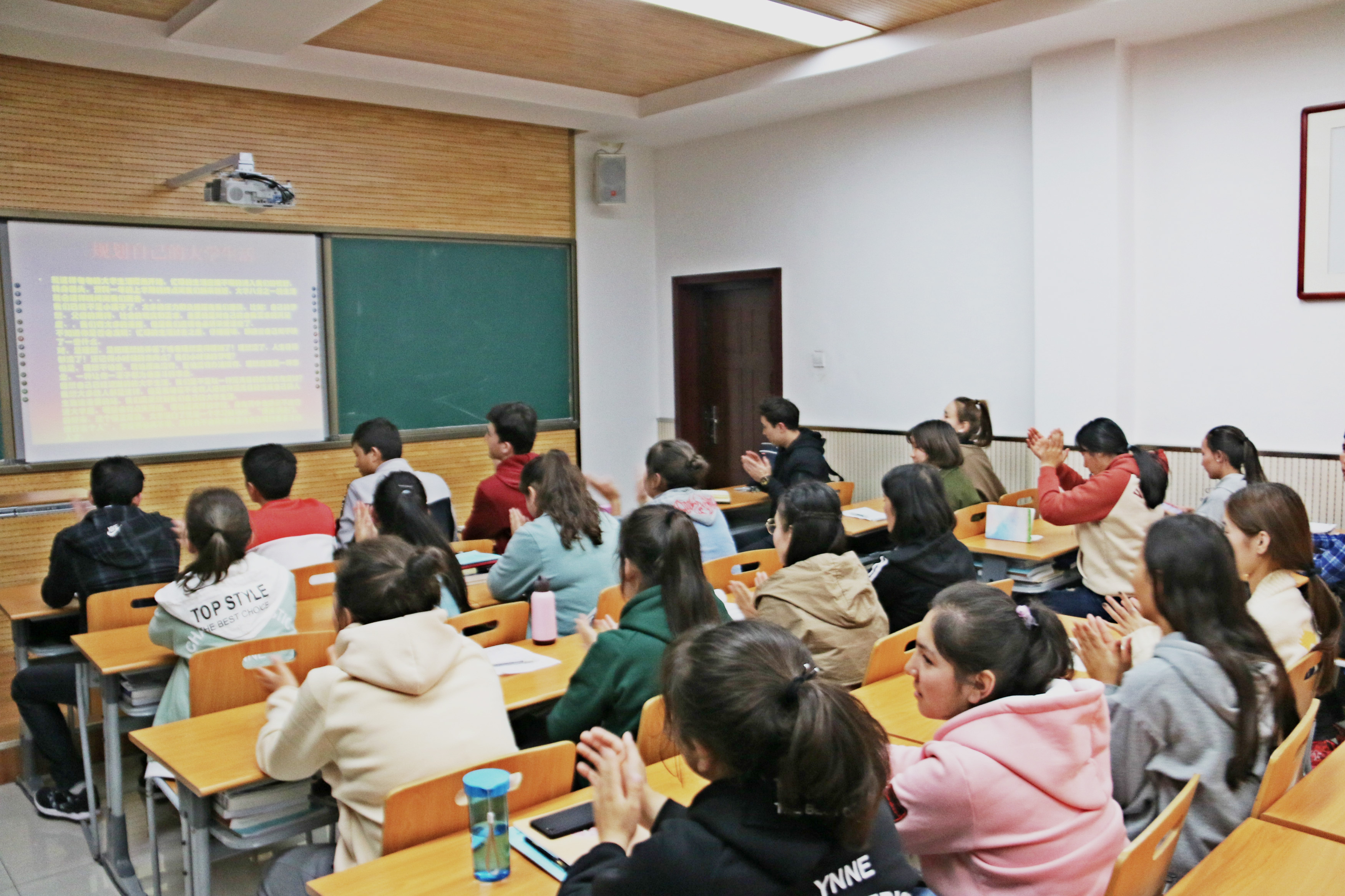 班会最后,辅导员热依木老师做了总结。首先,他从学习、生活环境、人际关系及心理健康等四个方面的适应性教育做了简单综述,并针对同学们在班会上所提到的困惑和问题进行了分析,分享和提出了个人当时如何适应大学生活的经验和几个建议;他强调只有好的开始、好的习惯的养成,才能为取得成功创造先决条件。最后,热依木老师希望同学们在校期间打好扎实的语言基础,提高计算机应用水平,培养独立思考和创新能力,读好书,以“用心开启智慧,用行实现梦想”为结语,鼓励同学们不断进取,继续攀高。