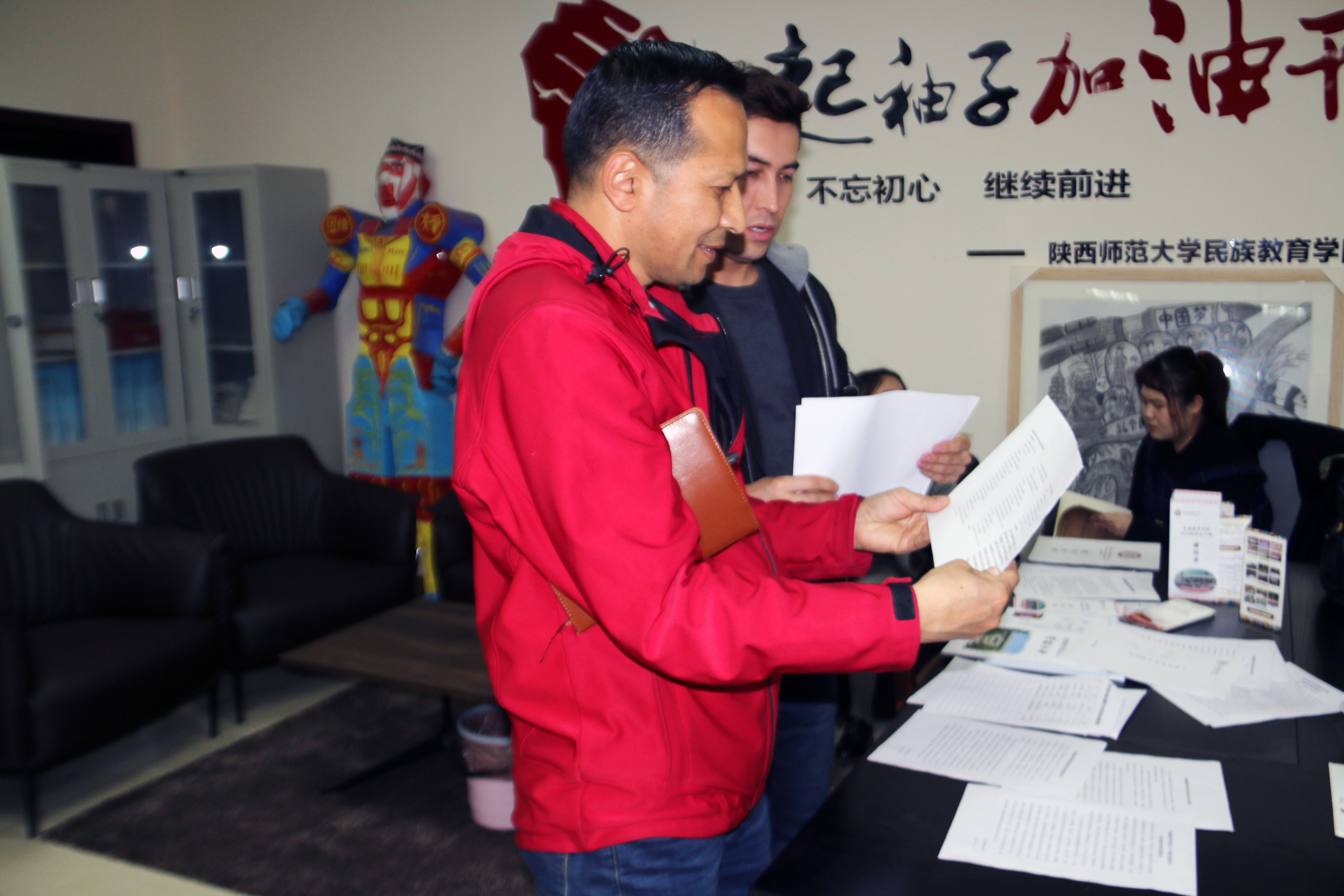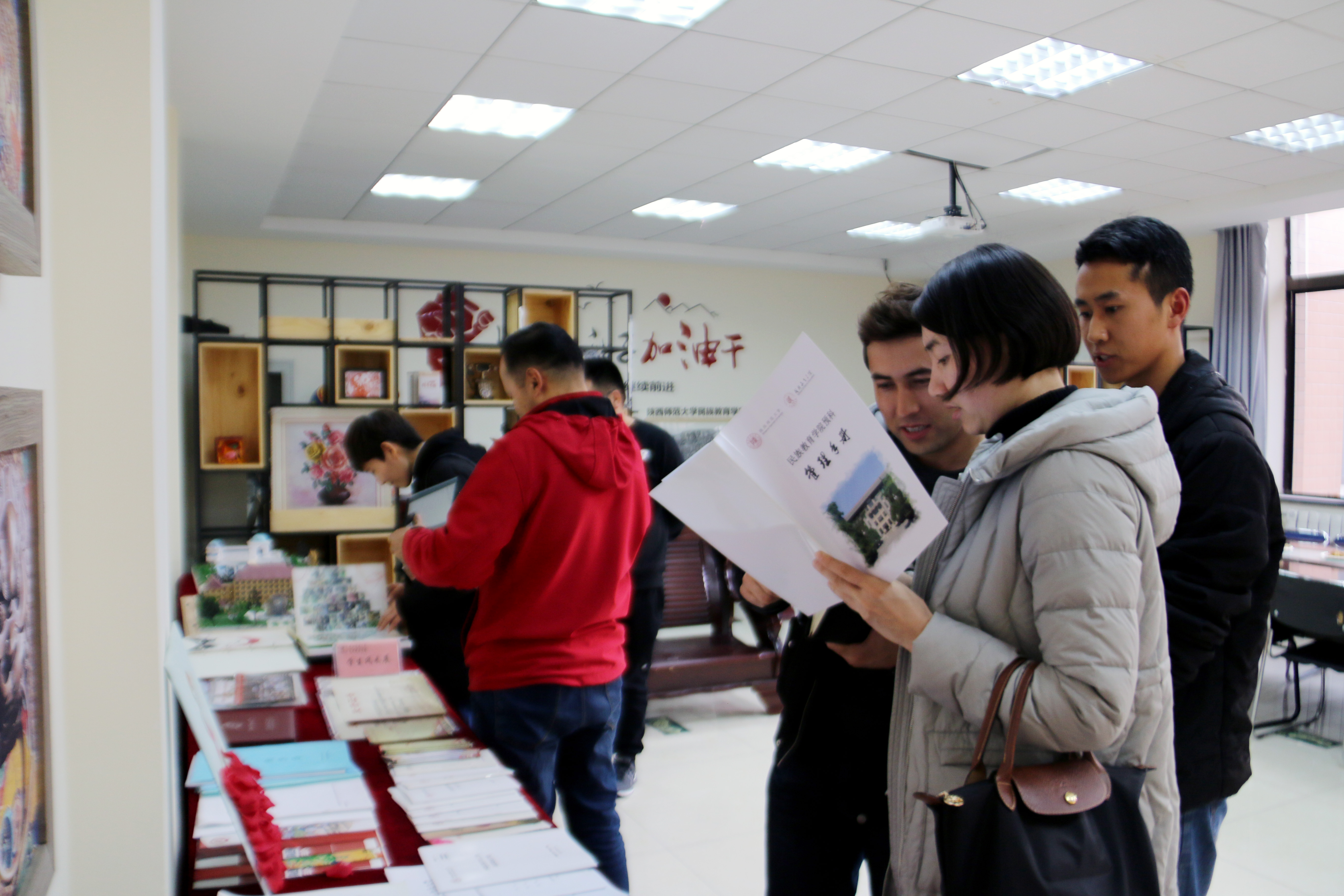 座谈会后,副书记窦文阳带领调研组分别参观了我院石榴籽工作坊(雁塔校区站)、学院“悦心坊”二级心理辅导站、学院文化墙和民族教育成果陈列室,介绍了学院的学生工作培养和管理等方面的相关内容和成果成效。