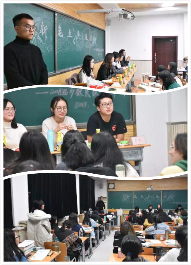 首先,是学长学姐自主介绍环节。16级学生会主席兼班长白日学长先分享了他潇洒风流的预科经历和坎坷曲折的专业选择之路,用亲身经历为大家比较了哲政院与历史学院的不同。接着,17级班长赵宁说起了自己的预科往事,她是如何在日常学习、总结和反思以及如何带动全班一起复习“英雄”的事迹。随后,熊昱婷为同学们介绍了自己所选专业内容和在外国语学院的具体感受。杨洋向大家谈起了当代新媒体的发展以及新传学院的具体情况。最后,张慧宇向大家分享了她一天的作息日程,提醒学弟学妹们要珍惜时间,不可懈怠。