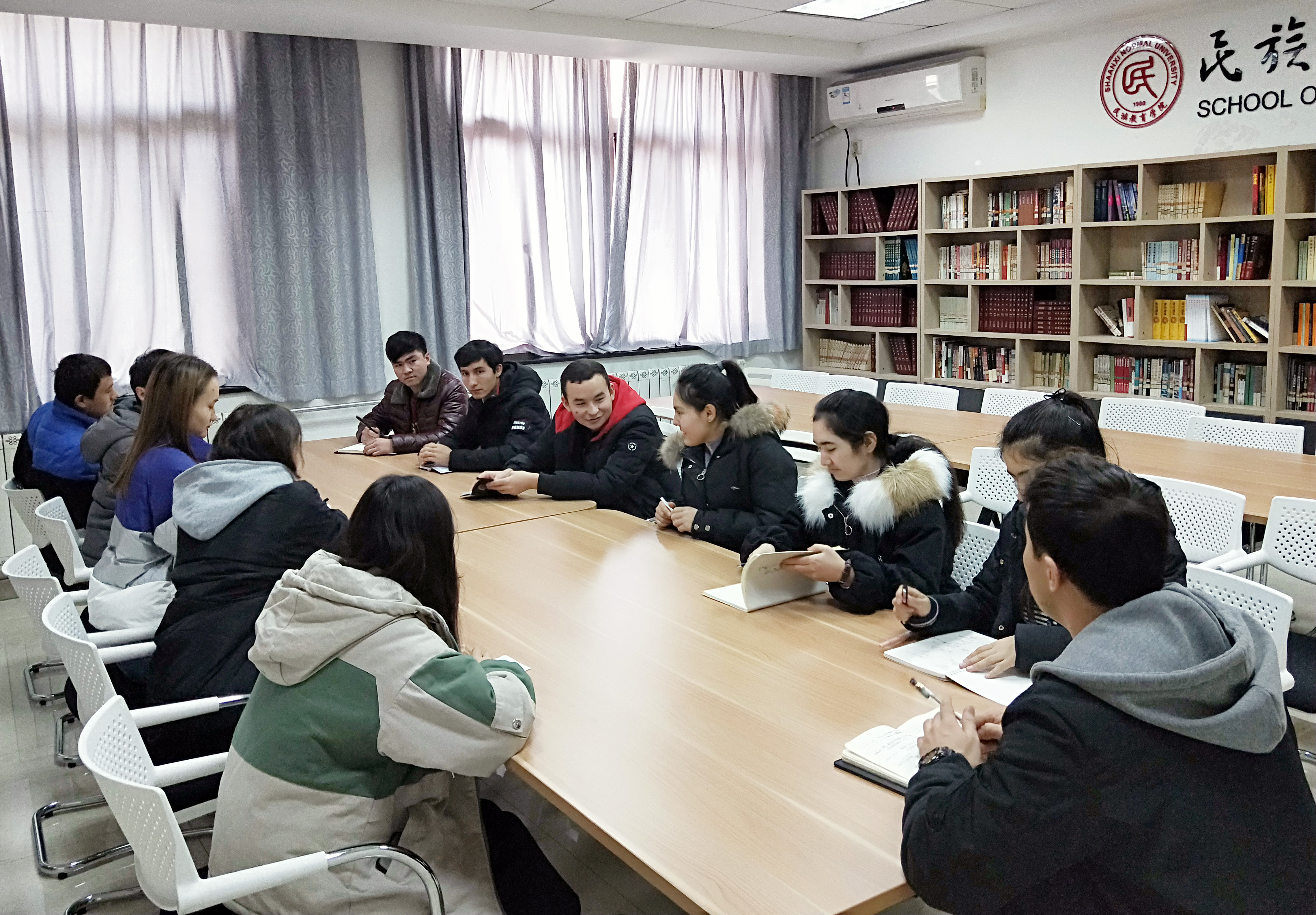 12月18日下午,为庆祝改革开放四十周年,认真学习贯彻落实习近平总书记在庆祝改革开放40周年大会上发表的重要讲话,在六附楼三层305会议室,我院召开了庆祝改革开放40周年师生座谈会,专职辅导员热依木老师及少数民族学生代表参加了座谈。