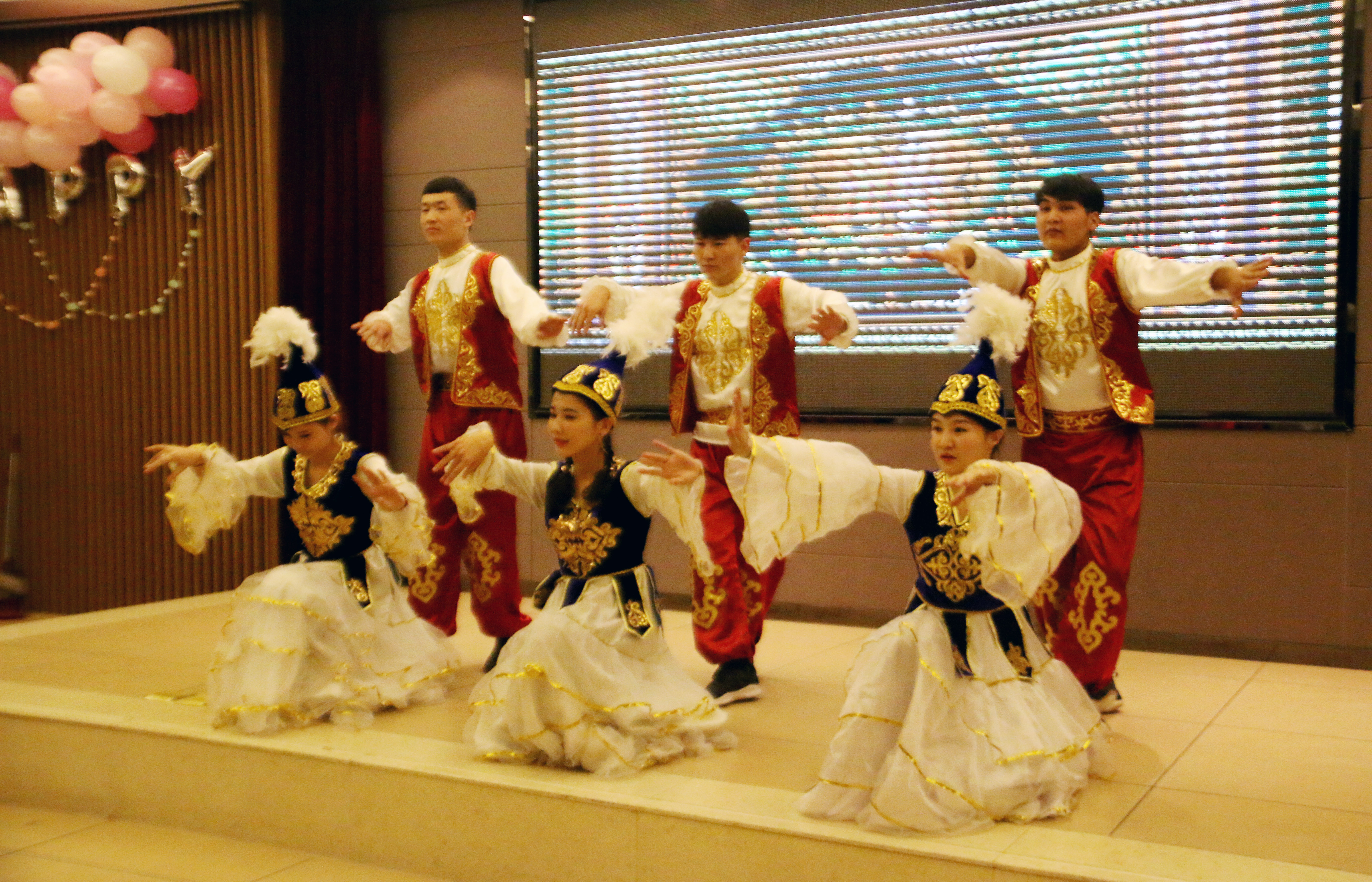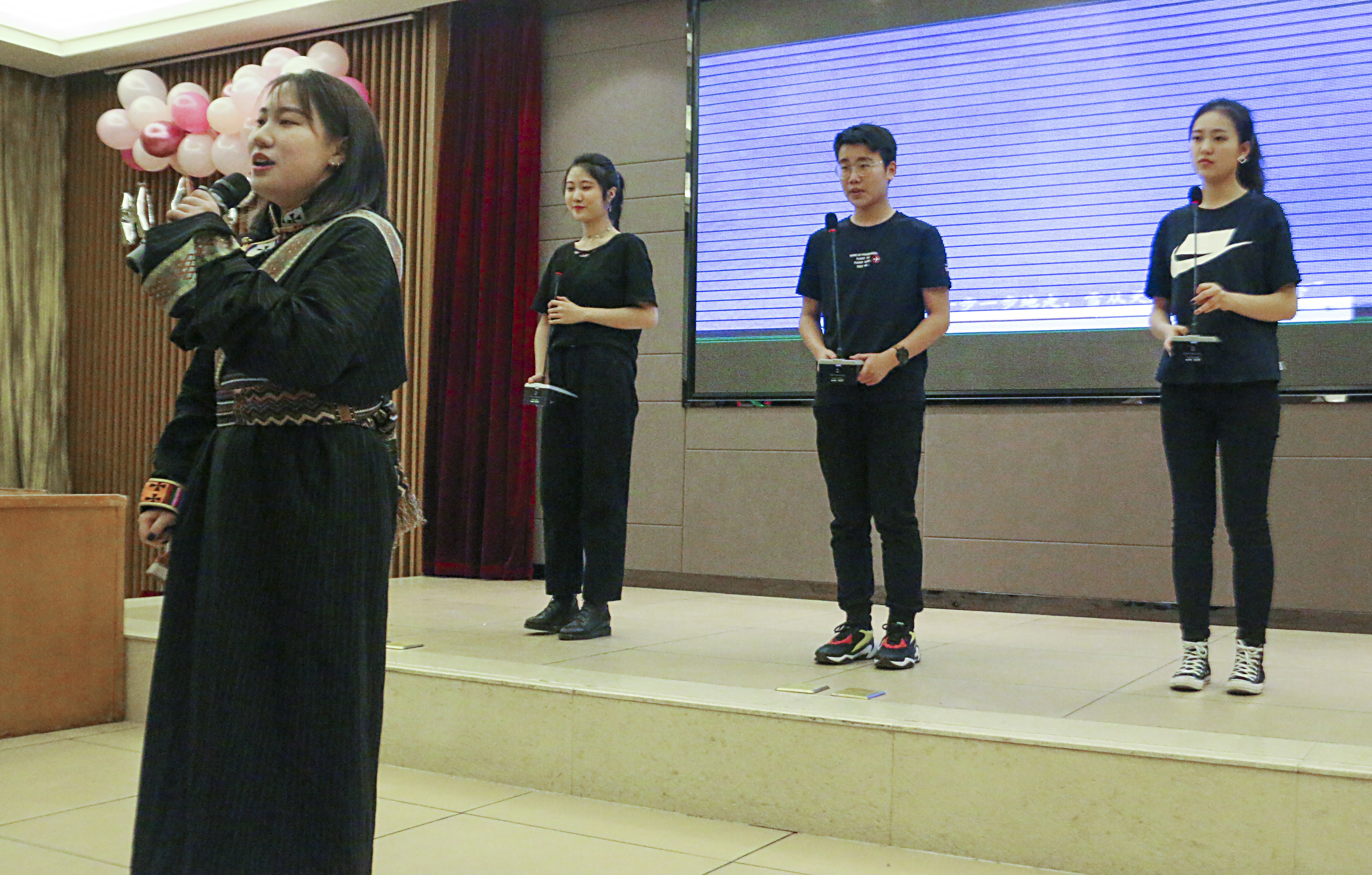 开场舞《我们最青春》为现场带来热烈了气氛,随之而来的吉他弹唱让大家回忆起了那些美好的岁月;朗诵节目表达出了新时代青年报效祖国的决心;两个小品深发了同学们对青春的思考;电台歌曲串烧让远在他乡的游子收到了一份来自家的温暖;哈萨克族与维吾尔族舞蹈与观众近距离互动,展现出各民族热情和风采;紫云相声社的相声使观众捧腹大笑;爵士舞蹈和塔吉克族舞蹈作为第一次出现在舞台上,用舞蹈展现出青春时期爱情的勇敢与细腻,欢快的音乐声伴随着着观众们激动的情绪,现场气氛走向高潮。期间还进行了师生互动和抽奖环节让大家彼此分享新年的快乐和抽到奖后的内心感想。晚会接近尾声,一位来自西安外国语大学的朋友为大家弹奏一首抒情吉他曲,现场观众轻声附和,温暖的声音回荡在晚会现场,迎新晚会就在这温暖的歌声中圆满结束。