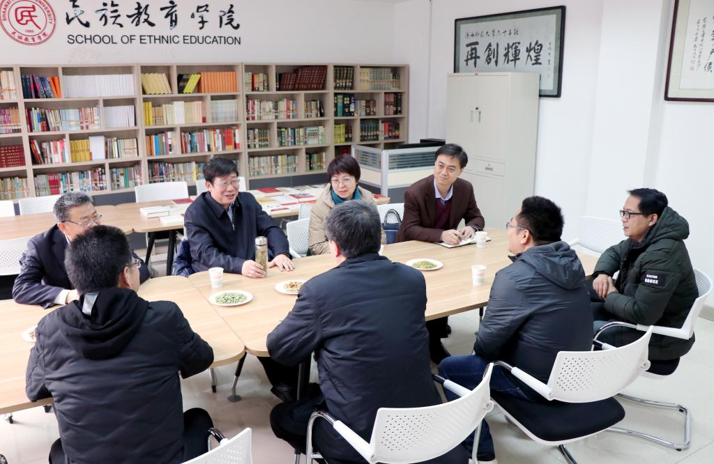 校长游旭群听完大家的汇报后,对学院开学伊始突出重点、部署及时、运转良好的准备工作态度和饱满的工作热情给予了肯定和表扬。游旭群详细询问了学院师生返校报到、教学工作运行、学生思想状况、安全隐患排查等情况,以及学院在工作中存在的困难和问题,并提出指导意见。他希望学院牢固树立安全防范意识。抓安全稳定,抓团结、促发展,颂党恩、育师德,进一步加强师资队伍建设,提高学院整体教学科研实力,鼓励年轻教师勇于进行科研创新,找准办学突破方向,打造少数民族预科品牌,推动学院更好更快地发展。希望全院教职工持续发力,在2019年再创佳绩,为学校的安全稳定和双一流建设发展做出贡献。游旭群校长还就三公