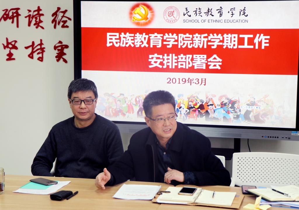 3月6日下午,民族教育学院在六附楼305会议室召开新学期工作部署会,并传达了学校相关会议精神。会议由学院党委书记郑生忠主持。