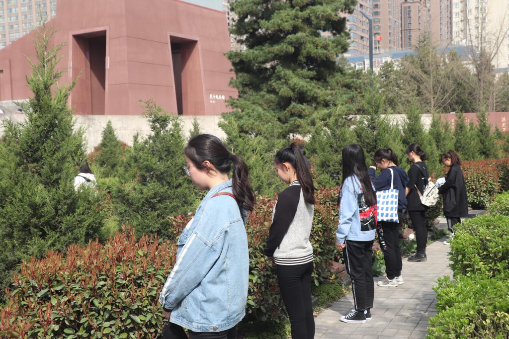 活动伊始,王子超同学向大家介绍了该陵园的布局概况以及本次实践活动目的和意义。他介绍到,此陵园内安息着726名革命烈士,其中247位烈士的遗骨安葬在烈士墓区内,484名烈士骨灰盒安放在纪念馆英烈厅并着重介绍了曹力如英雄墓、九烈士墓、杜斌丞英雄墓三座主墓。站在烈士墓前,大家心潮起伏,思绪万千。为了表达对革命先烈的敬仰,在团总支副书记周杨洁同学倡导下,预科一班学生代表在纪念碑前默哀一分钟,他们静静的追思,深深的缅怀,把最深情的思念和最崇高的敬意,寄托在这次祭拜中。最后,在纪念馆工作人员带领下,大家参观了烈士纪念馆,更深入的体会到抗战之艰辛,如今之美好生活来之不易。