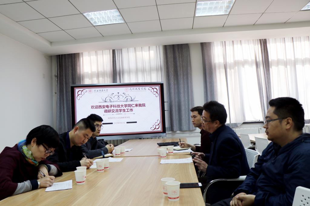 4月03日上午9:00,西安电子科技大学少数民族学生管理办公室主任张志祥在新疆内派管理教师何秀琴和新疆籍少数民族学生辅导员比拉力·巴热的陪同下来我院调研交流学生工作,我院党总支书记郑生忠、副书记窦文阳、专职辅导员热依木参加了交流座谈,座谈会在六附楼305会议室举行。
