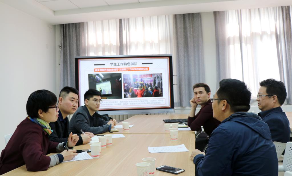 座谈会伊始,郑书记对西安电子科技大学的学工同仁莅临我院调研学习表示热烈欢迎,并重点介绍了学院基本情况、发展定位、发展历程、预科培养方案、分层教学、过程考核、结业考核标准等相关内容。随后,窦文阳从教学条件、师资队伍、民族学生基本情况、统一管理、往届学生中发生的典型案例、制度建设以及少数民族学生思想政治教育管理工作的特殊性等方面作了介绍。专职辅导员热依木对学院学生特色工作、学风建设、心理健康教育、资助育人以及稳定安全管理工作等方面做了简单的介绍。
