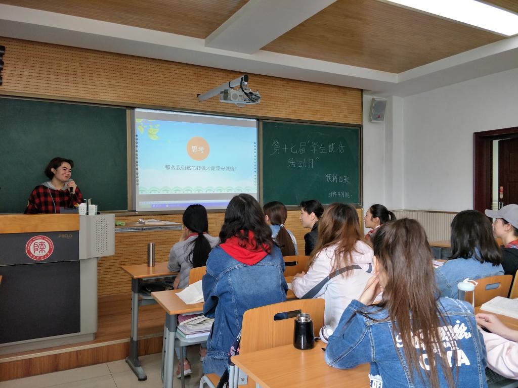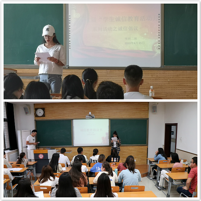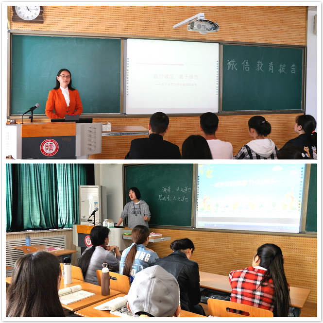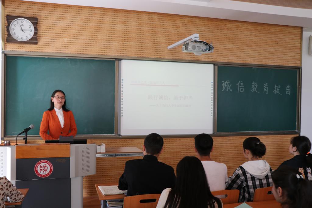 邀请学院中国语言文学教研室教师卢静和谢欣然老师在各预科班固定教室分别就“践行诚信、敢于担当”“大学生不良网贷行为及其影响”、“奖助学金申请、考试诚信”及“如何建立个人诚信档案”等主题做了诚信专题报告。