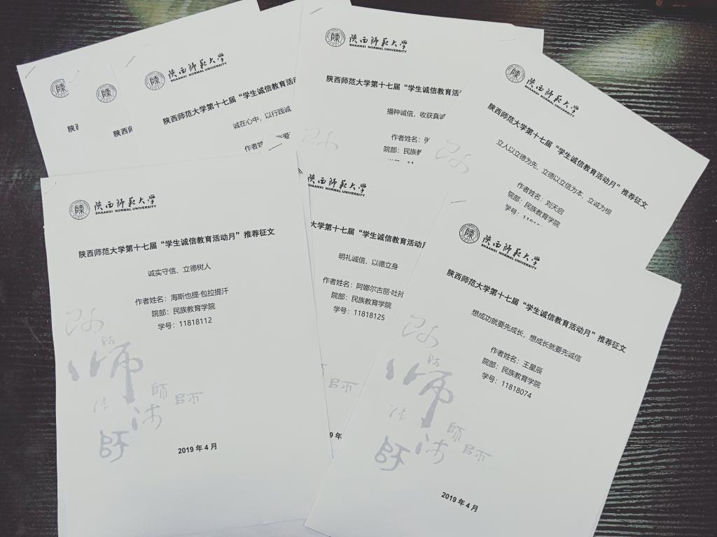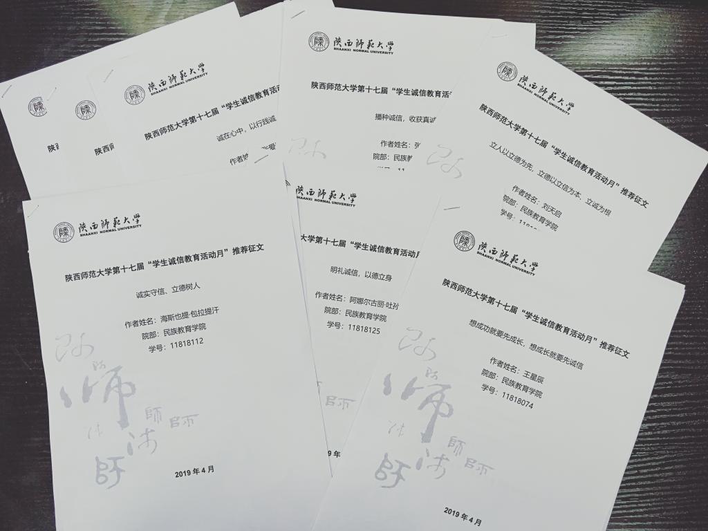 4月3日-4月30日,学院举办了以“诚实守信、立德树人”为主题的征文比赛。同学们积极参与,热情高涨,征文内容健康丰富,形式多样,题材广泛。