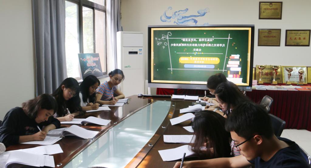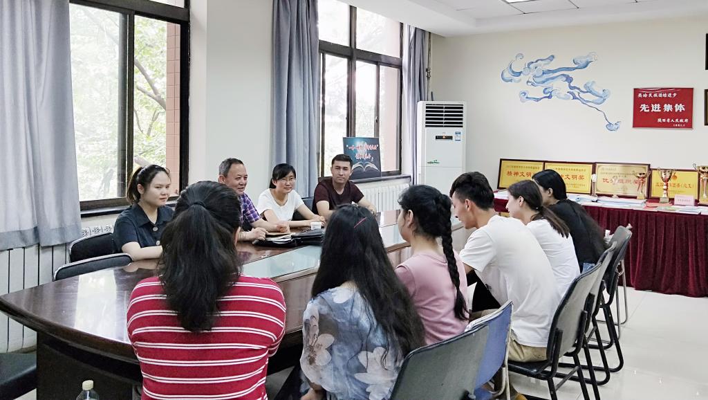 6月4日上午10:00,我院在石榴籽工作坊进行新疆籍少数民族学生座谈会。新疆内派服务管理教师买买提·热合曼、邹璐洁、数学与信息科学学院专职辅导员鞠恩霞、三公