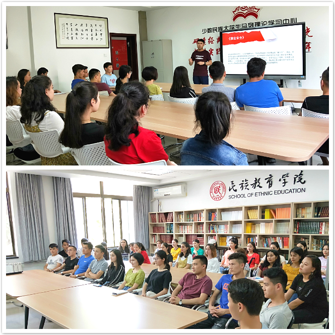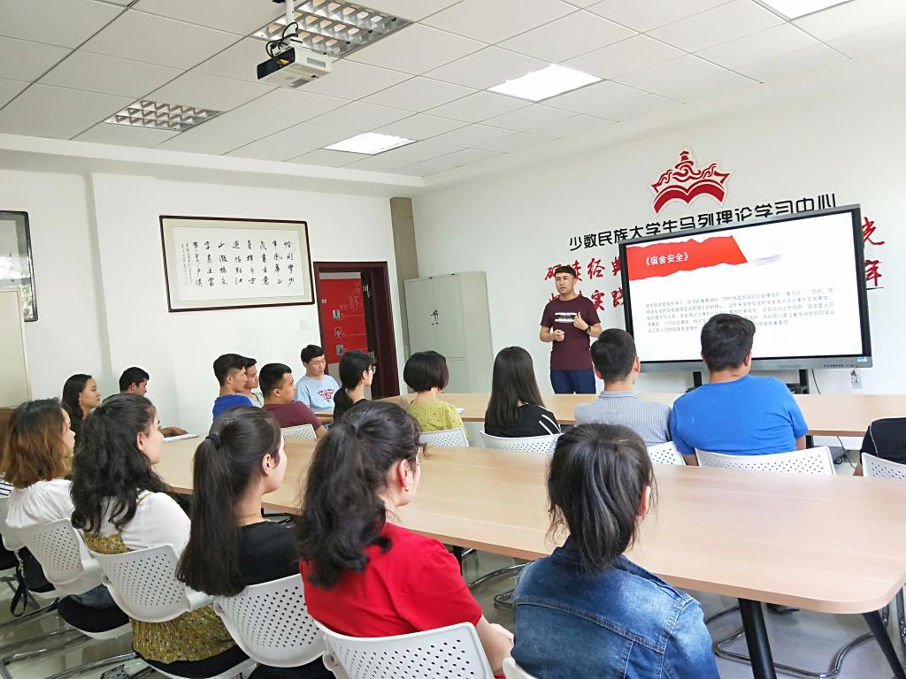 6月1日下午,在雁塔校区六附楼少数民族大学生马列理论学习中心开展了一次大学生安全教育活动,我院专职辅导员热依木老师主要围绕大学生校园稳定安全方面做了讲解,新疆籍民族预科生参加学习活动。