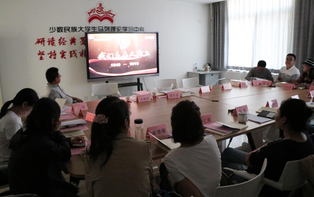 会上,全体党员集体观看了纪录片《我们走在大路上》第一集:新中国诞生。该片以习近平新时代中国特色社会主义思想为指导,把70年来中国共产党带领全中国各族人民进行社会主义革命、建设、改革取得的辉煌成就和宝贵经验作为主线,坚持“政论情怀、故事表达”风格歌唱祖国、礼赞时代,呈现亿万人民在社会主义道路上不懈奋斗谱写的壮丽史诗。