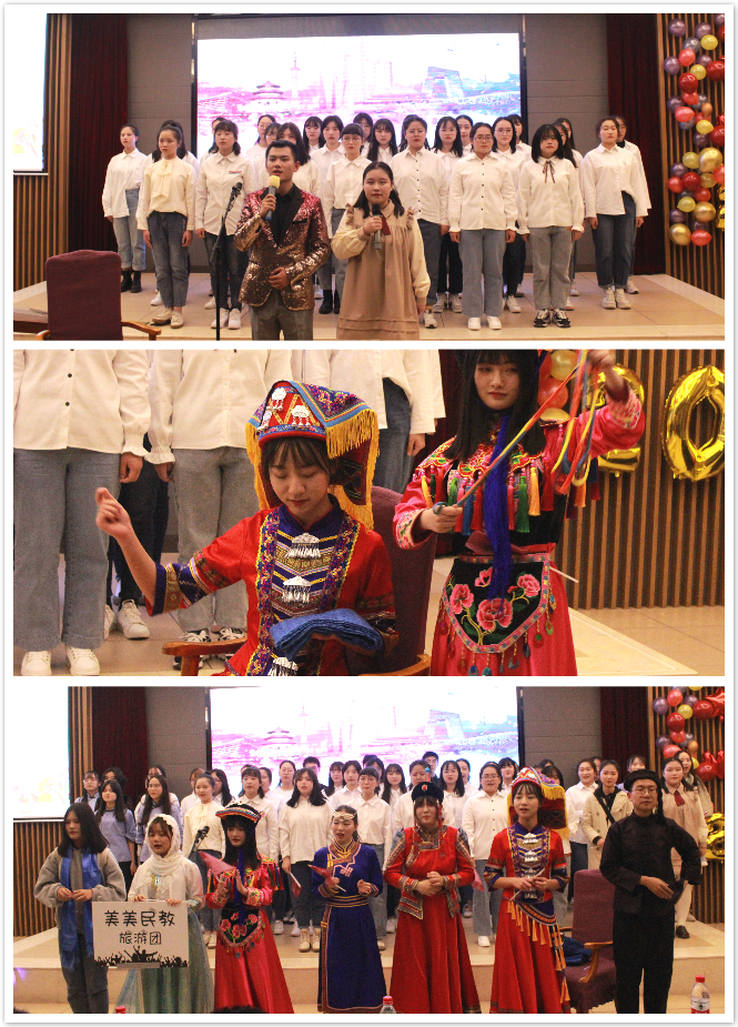 为迎接2020年的到来,展现民教学子青春靓丽的风采。2019年12月13日19时30分,由我院学生会主办,以“谱青春乐章,绘民族蓝图”为主题的迎新晚会在我校雁塔区启夏苑二楼多功能厅拉开帷幕。我院党总支书记郑生忠,党总支副书记、副院长窦文阳,团总支书记赵超,我院教师代表杨维平、戴妍、乔露、谢欣然,教学秘书贾文红,专兼职辅导员热依木,许珊、冯祎洁以及各兄弟学院代表等共同出席本次晚会。