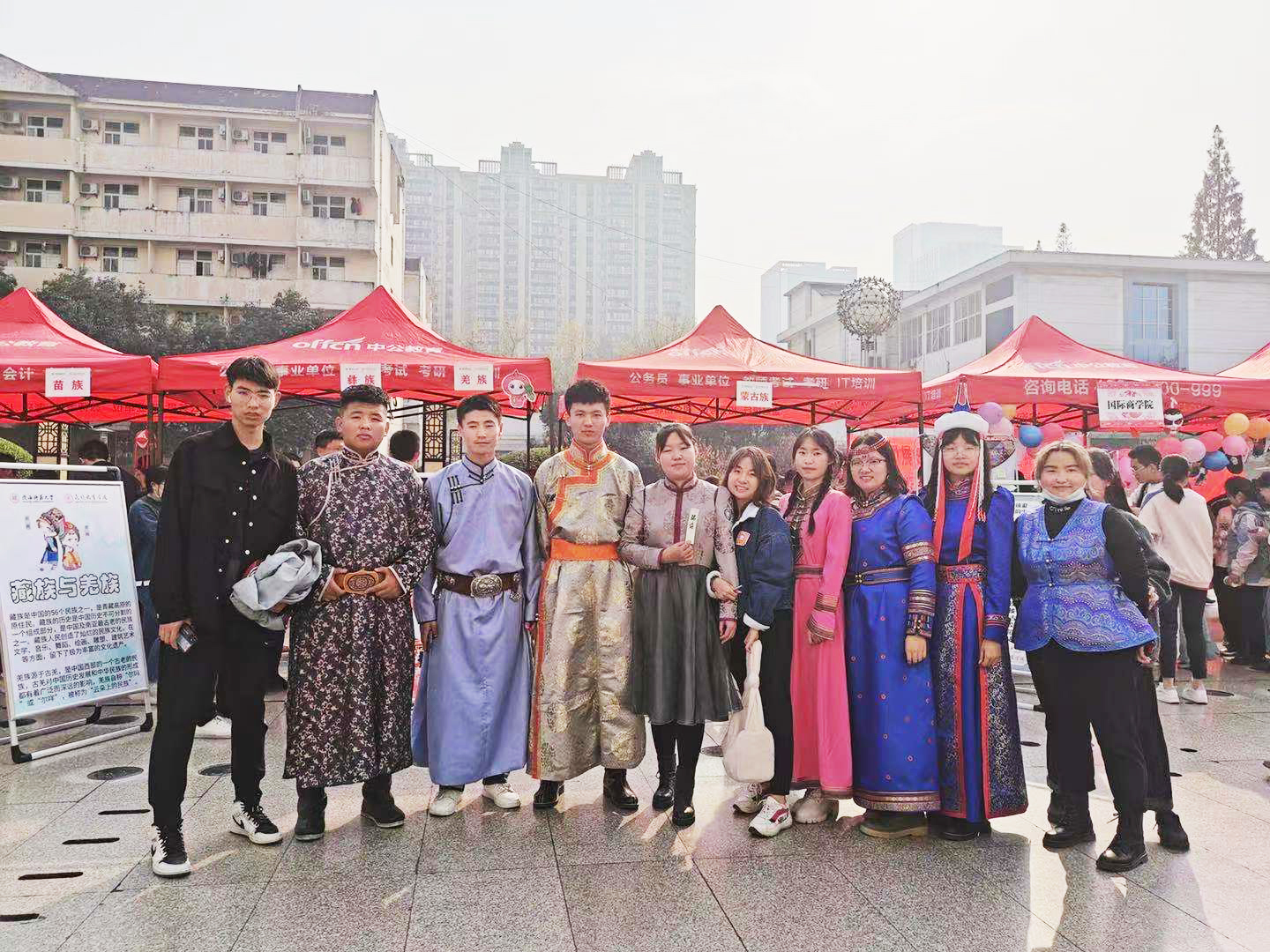 回族美食花样繁多,饮食文化也是流光溢彩,八宝茶飘香四溢,茶具精巧玲珑,民族小吃如馓子、果果、甜胚子、辣条等,让同学们一开眼界、大饱口福。苗族同学带来了地方特产——辣椒,满足了南方同学的无辣不欢的喜好。以花鸟鱼虫为主题的苗绣,精美绝伦的苗族银饰不得不让人感慨苗族人民的心灵手巧。蒙古族香气浓郁的奶茶、牛肉干、奶皮子、奶豆腐向我们展示了蒙古族的饮食特色,而马头琴与蒙古舞表演似乎瞬间把人带入那片辽阔的的大草原。掌握蒙古书法的同学大显身手,以蒙文写诗,民族文字魅力便生动展现在观众的眼前。