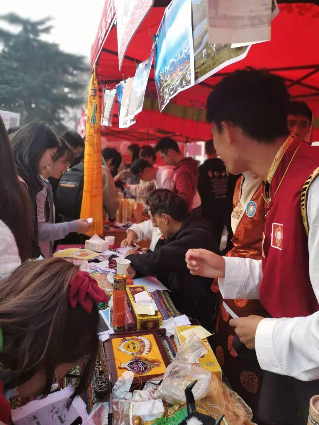 的展区中,各民族发扬自身优势,展现本民族特色,维吾尔族、哈萨克族、回族、苗族、蒙古族、藏族、彝族、羌族、土家族、壮族等民族同学经过精心的准备,给大家带来了一场丰富的民族文化盛宴。