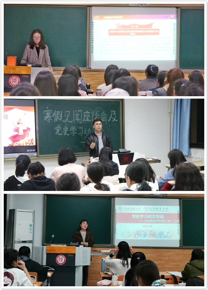 在本次专题学习教育中,各班专兼职辅导员带领学生学习习近平《论中国共产党历史》第一篇、第二篇文章,随后各班同学结合自身学习和生活实际,就党史学习内容展开热议。