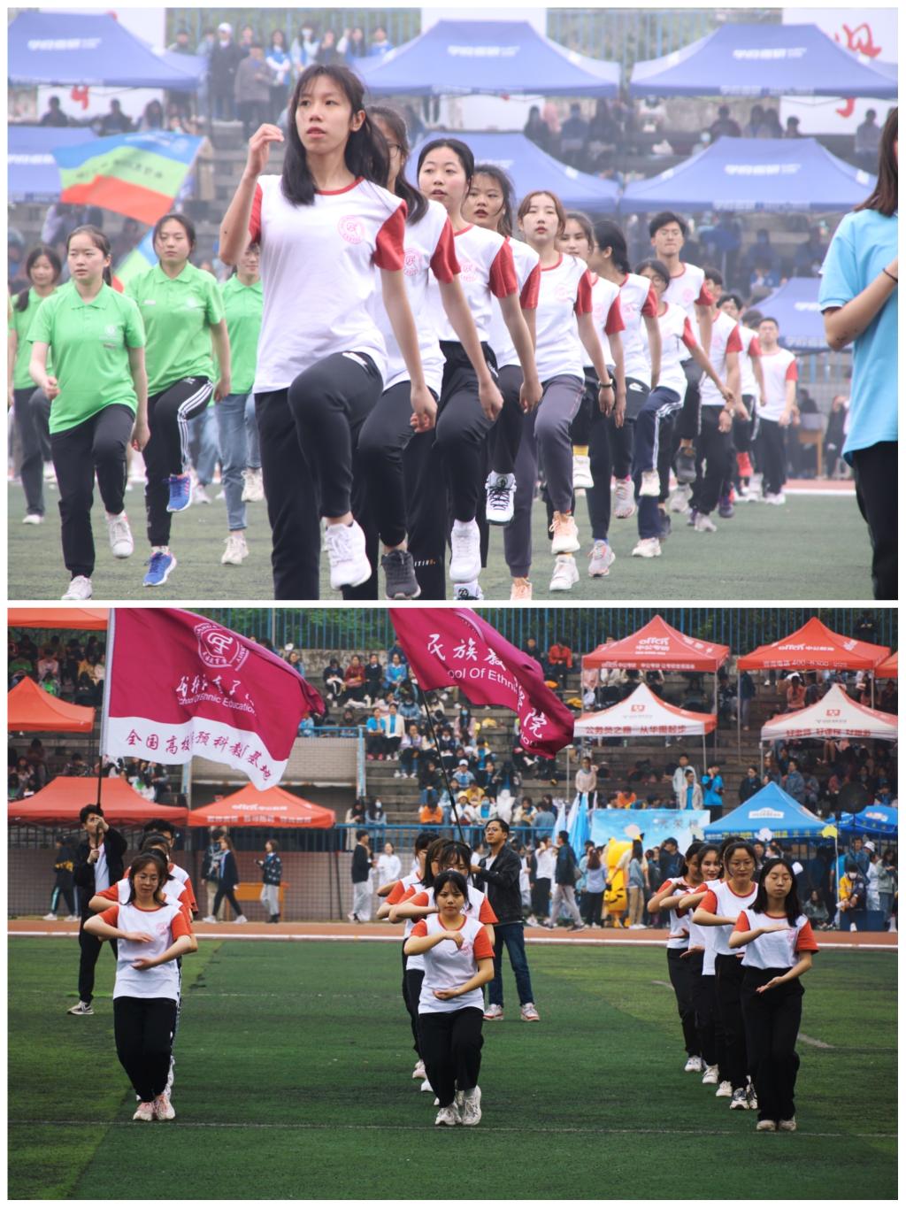 我院学生在开幕式上进行风采展示。同学们身着民族传统服饰,伴着明快的歌曲,笑容灿烂,活力四射,展现出各民族的独特风情;表演太极拳的同学们运势行云流水,中正安舒,表达了其对太极文化的深刻理解和体悟;啦啦操激情洋溢,振奋精神,生动活泼,表现出阳光自信的精神风貌,传递对于运动健儿的美好祝愿。