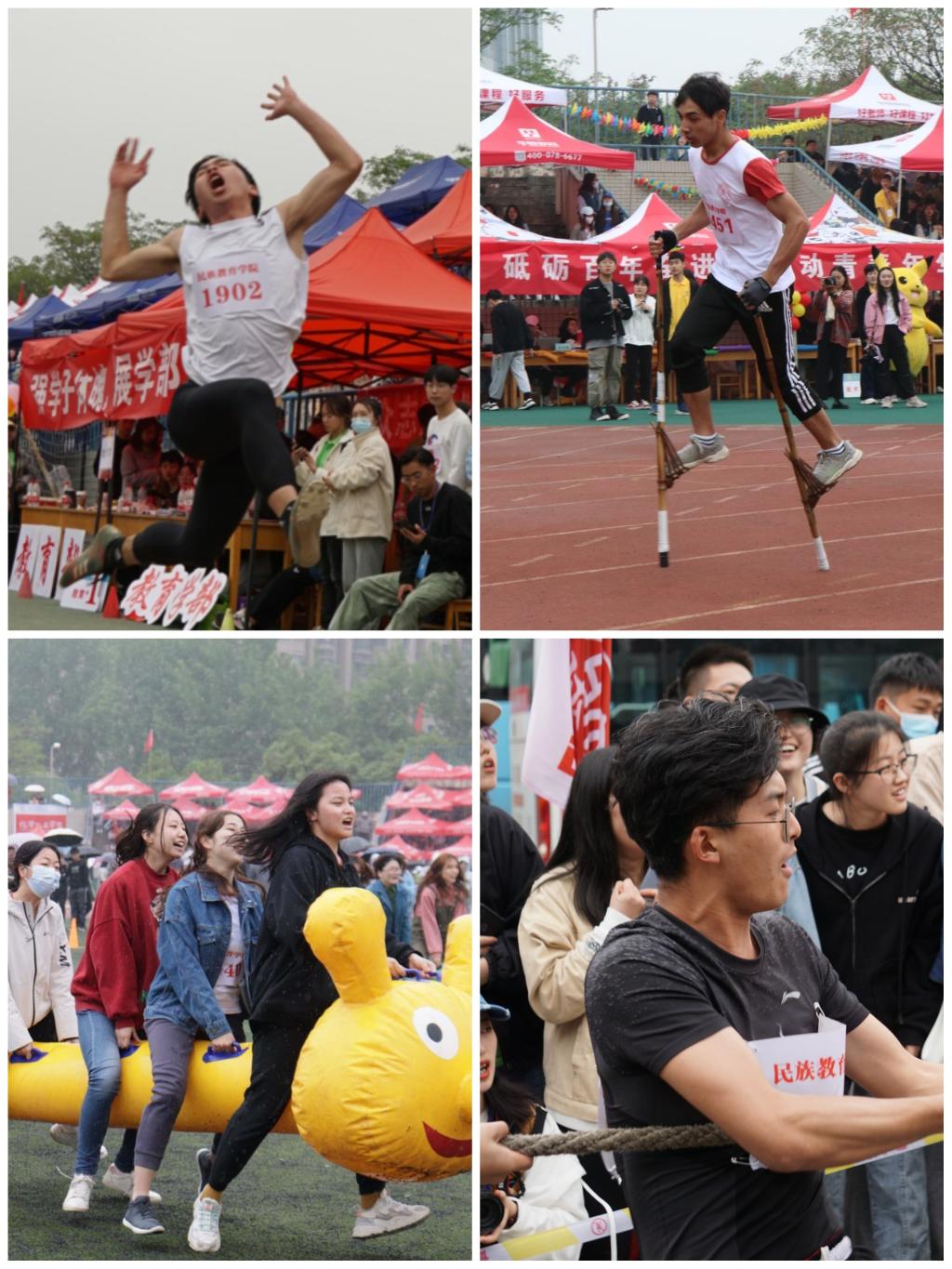 本次校运会项目分为田赛、径赛、趣味项目三大类,涵盖22个比赛单项,7个集体项目。我院一百余名学生参赛,共同呈现了精彩激烈的比赛。在不同赛场上,民教人赛出精神、赛出风格。百米赛中,运动员们敏捷专注,如箭离弦;长跑运动员意志刚毅,坚挺勇猛;跳远选手助跑矫健,调整迅速,动作漂亮。集体项目中,同学们展现出过人的默契和必胜的决心,“动力火车”口号响亮,步伐铿锵,接力棒承载着共同的希冀和期望,“板鞋竞赛”中同学们合心协作,互相配合。他们热情激昂,充满活力,成为绿茵地上一道亮丽的风景线。