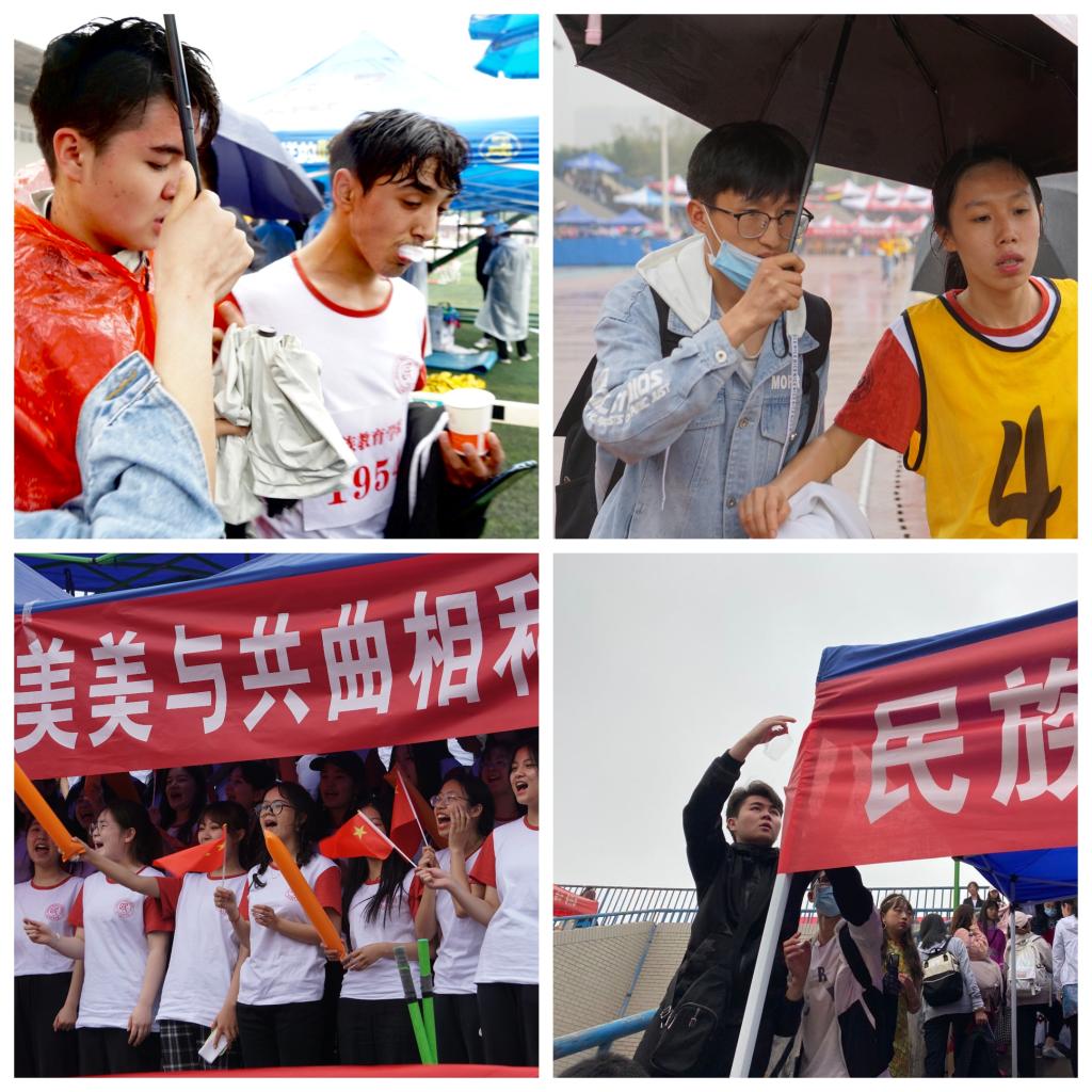 激动人心的比赛背后离不开志愿者和工作者的默默付出。历时三天的运动会,志愿者们在服务岗位上有条不紊地分工合作:组织信息检录,拍摄珍贵瞬间,递送水与食物,布置看台,打扫卫生,他们是民教院健儿们的坚实后盾。看台上的观众们为运动健儿们助威呐喊,“民族团结紧相依,美美与共曲相和,美美民教,民教最美”的口号响亮高亢,加油声此起彼伏,气氛热烈。啦啦操队伍在动感的节奏声里,展示出我院的独特风采,体现着我院学子争取荣誉、刻苦奋斗的团结志向与宝贵品格。