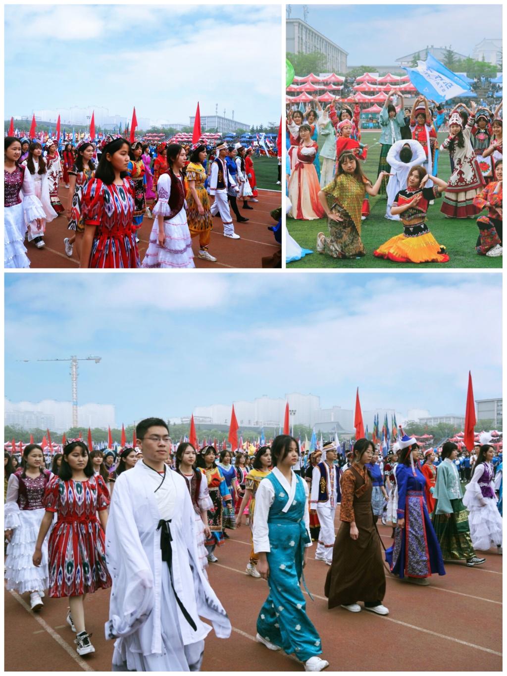 经过前期充分细致的准备工作,开幕式上,我院代表队身着民族传统服饰出场,展示出各民族的特色:五湖民族相聚,四海兄弟来会,拼搏的汗水谱写民教院四十周年院庆的璀璨华章,坚定的口号声向党的百年华诞献礼;他们如石榴籽般紧紧团抱在一起,团结拼搏。我院学子用力挥扬院旗,欢呼喝彩,运动员们以积极进取之姿,敢为人前之势,开启了我院校运会的征战之旅。